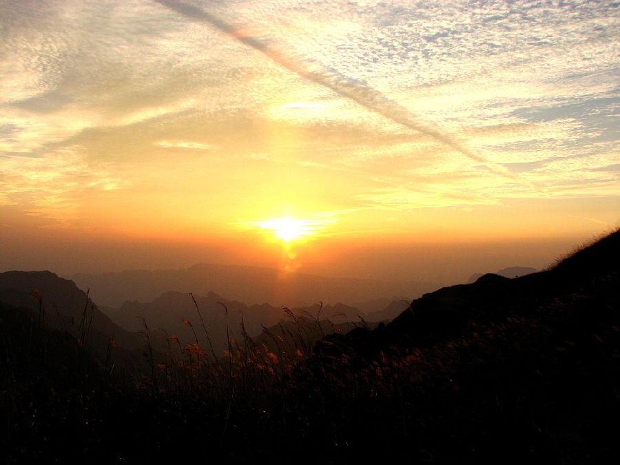 高嶂顶与落日峰之间的最低海拔是1200米;
