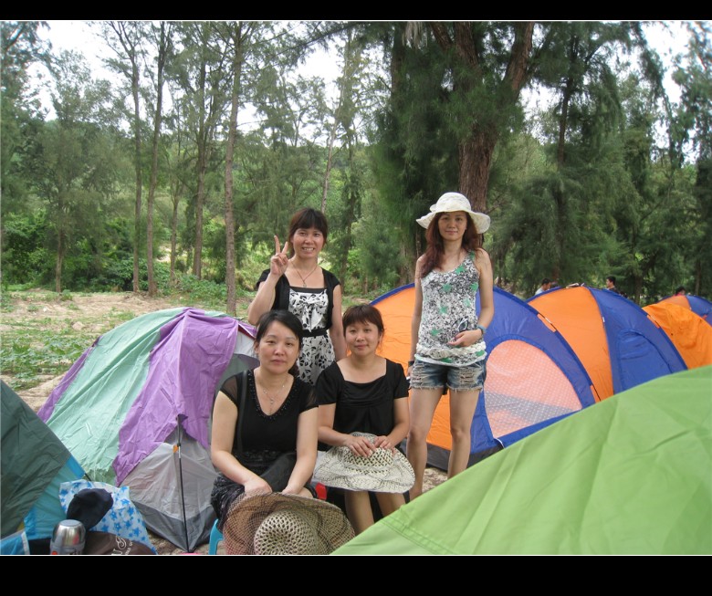 小树林下是柔软的沙地,海风吹过小树林,阴阴凉凉的。呵!这里正好是扎营的好地方,大伙儿趁时间还早,赶快展开帐篷开始扎帐。大伙儿你铺你的,我扎我的,小树林一下子热闹了起来。我和稻草是第一次扎营,忙得大汗淋漓也忙不出个所以然来,只能对着帐篷干瞪眼,最后还是外表吊儿郎当内心热情善良的老牛同学过来三两下帮我们扎好了!