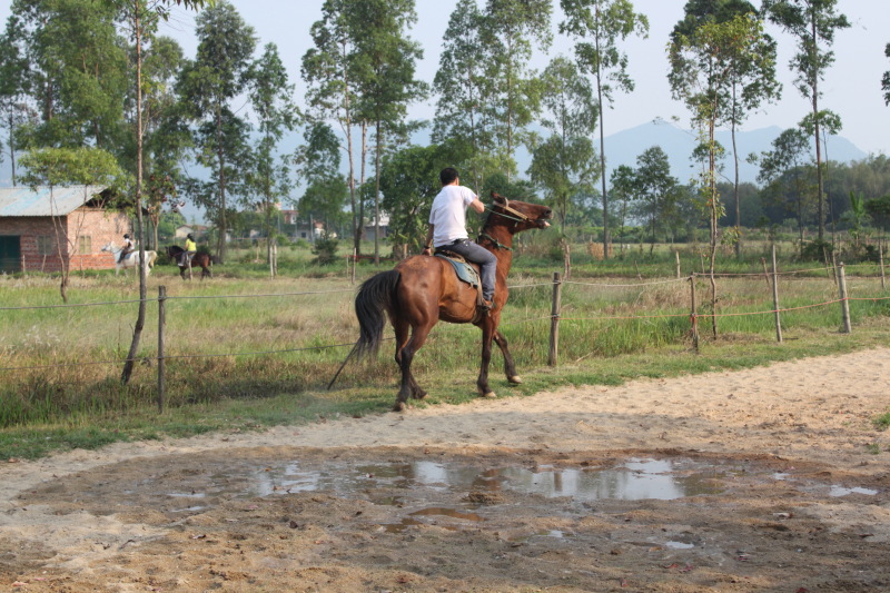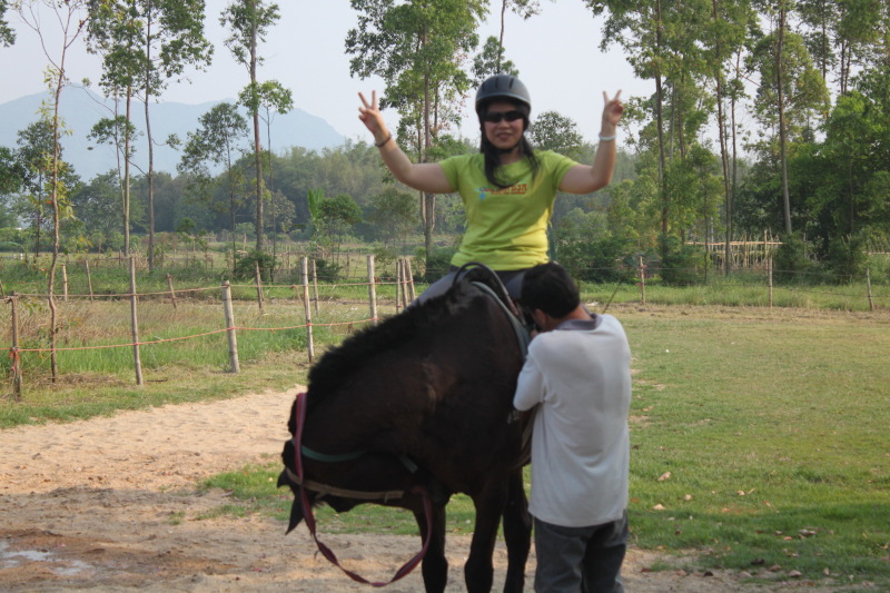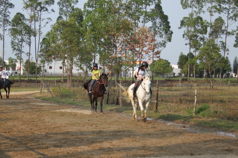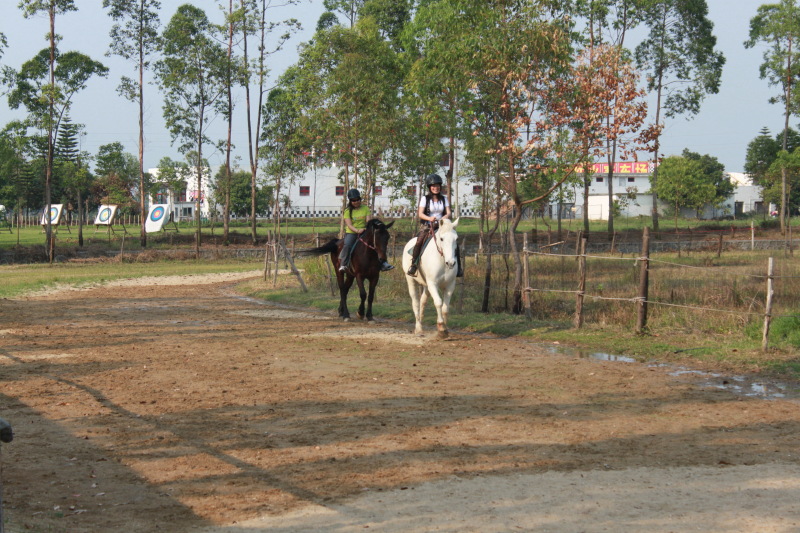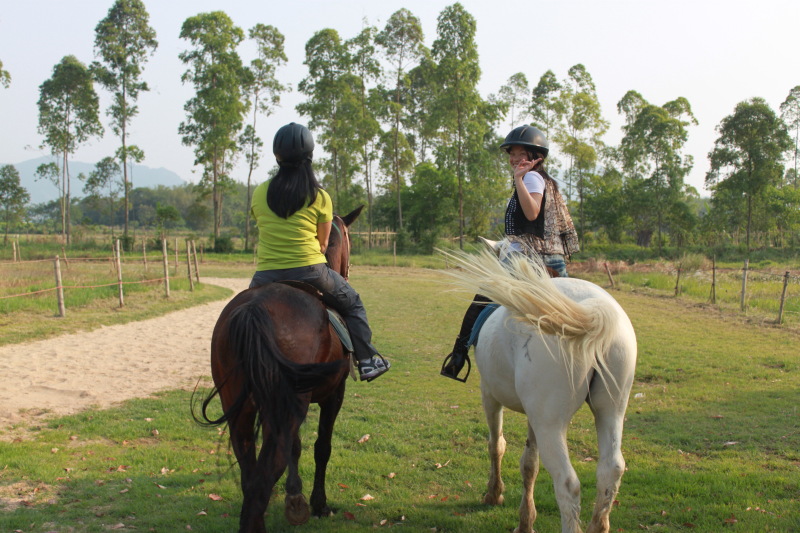 偶遇一班YMCA?他们也刚玩完卡丁车,准备骑马去