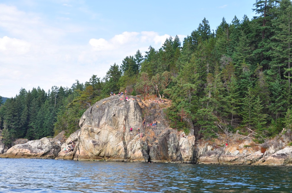 一群年轻人在攀崖兼游泳