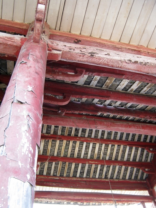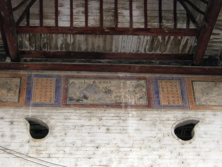 上面的彩画有几百年了,依旧色彩绚丽。想来当时是用矿物颜料画上的,大概和画唐卡那种相似的吧!{:cat49:}