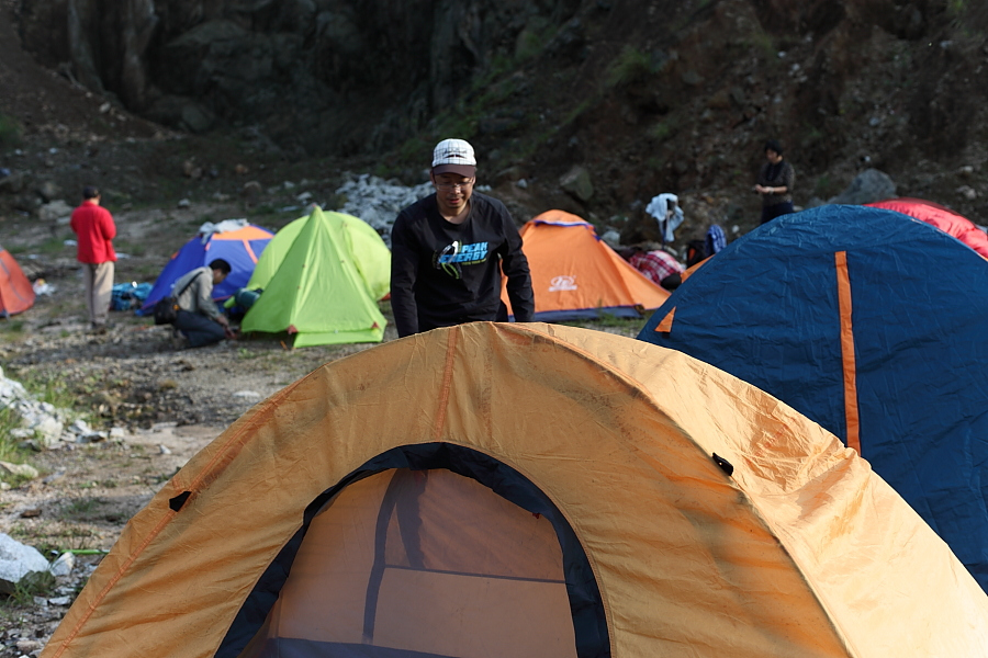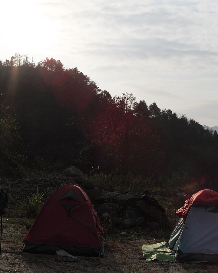 还在睡梦中,被一阵阵刺耳的哨子声伴随着64哄亮的男高音:“起床集合啦!”把睡梦中的同学惊醒。拿起手机一看,已经是早晨7点40了,想想来不及看日出了,还是继续睡懒觉吧。正迷迷糊糊的睡去,又听到妖妖大呼:“吃早餐啦!”于是和冰姐起来洗刷,吃着香喷喷热呼呼的鸡蛋面时,拍日出的大师们也回来了。吃完早餐,稍作休息,收拾装备回程。