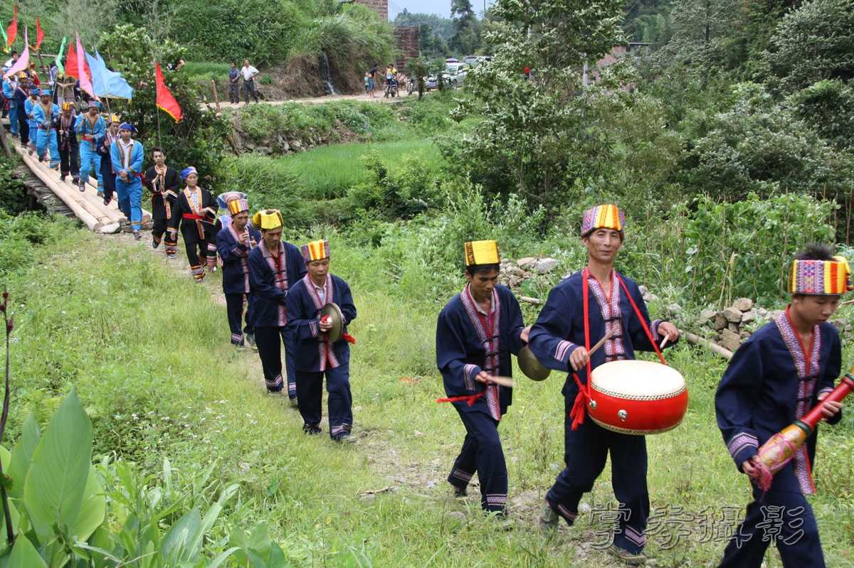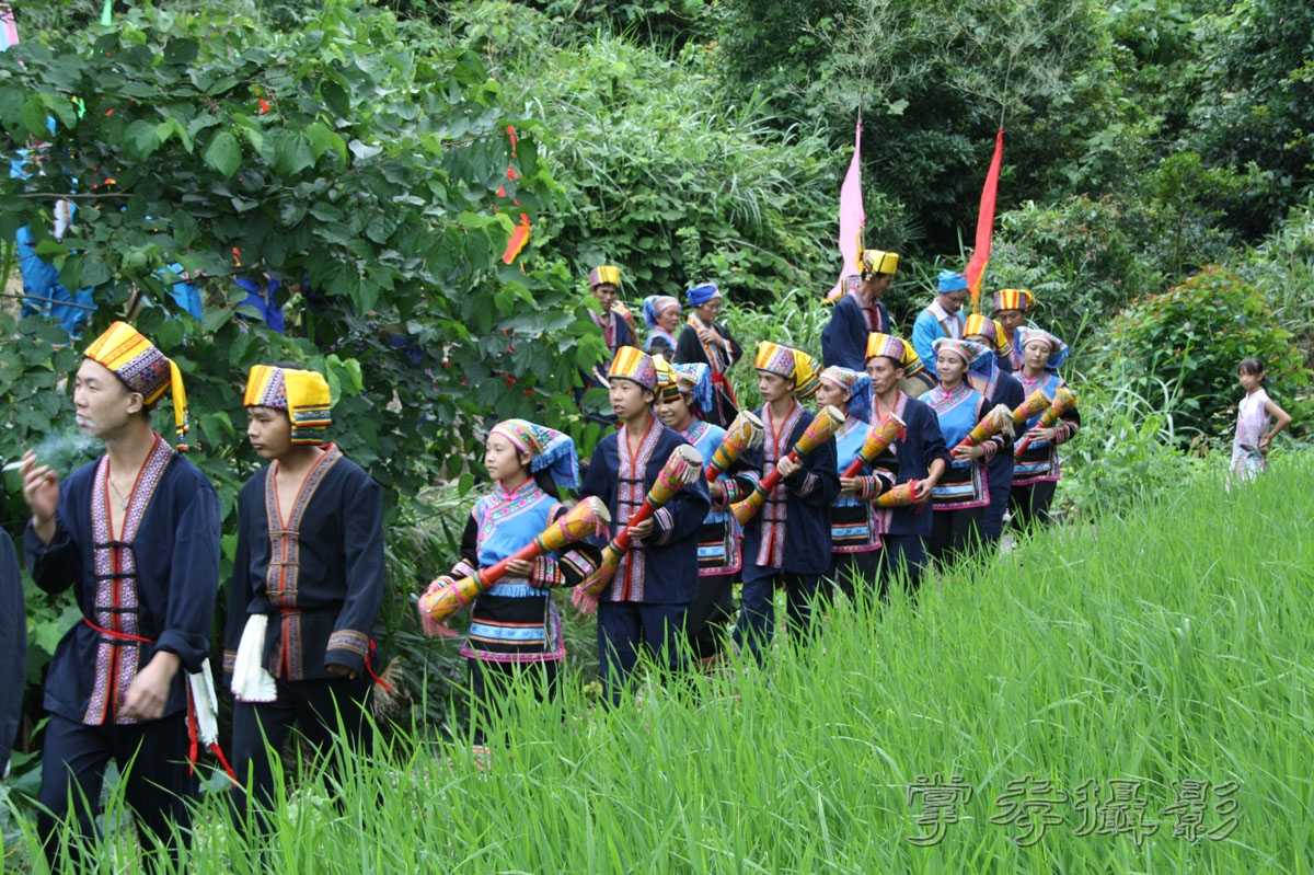 午餐后,青年,门小孩子和姑娘们有的三三两两,四五成群在门楼边,树荫下手腕手,肩并着肩,娓娓对答把村寨的神老节变成了歌舞的乐园,整个村庄呈现的欢乐气氛,节日活动一直持续到夜幕降临。