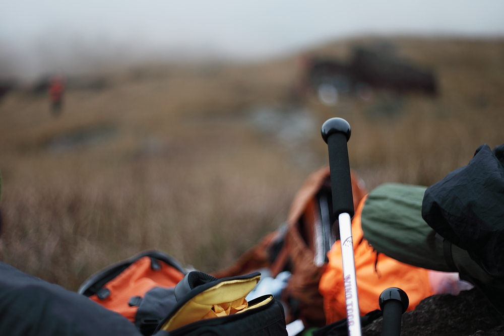 25日8时,累了,醒了!煮茶入瓶,吃过干粮收拾行装。脏,已经成为驴友的名片----两天没洗澡刷牙了!装包完毕,背包重量猛然增加10斤!9:30时,集合上顶的同伴回来后起程!雨变大了,鞋进水了,风却一直不愿远离!