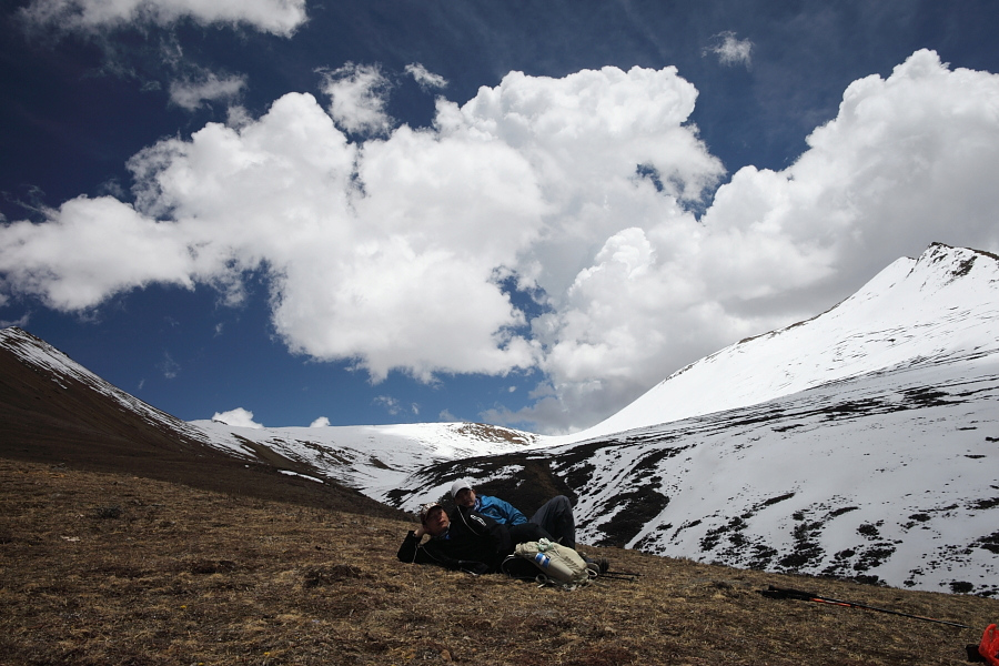 2、领队协作兼厨师:小何。带眼镜的帅帅的斯文重口味四川文艺青年,大部分时间收队累得够呛,到营地还要泡制热饭菜,提供早晚开水,一路佩戴IPOD,喜爱音乐类型不详,看起来很嗨的样子,烟枪之一,经常驳火。