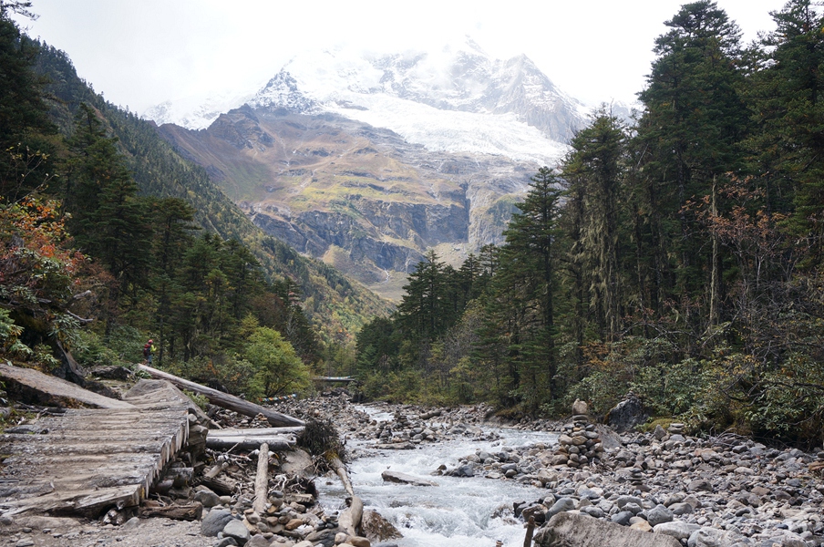 ”出师未捷身先死“这句借用来形容西当到雪崩之路的崩溃是再恰当不过了!高原、重装、一千多的海拔上升,变态的上下山路——从踏出上山的第一步起,步步都是爬升,没有半米的平直路,头胀痛、胸气闷,两步一停一大喘,五步一歇一大喘,短短的十多公里走了八九个小时,有那么好几十刻的瞬间,我坚信自己回不到清远了:'(!