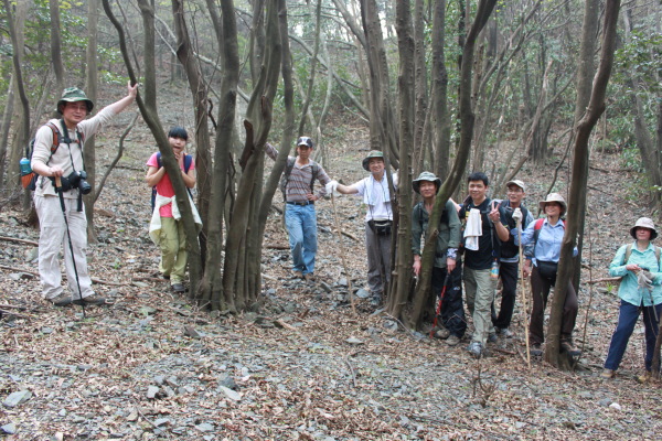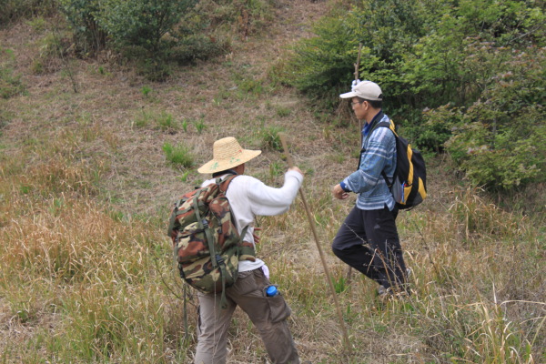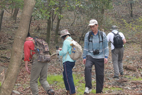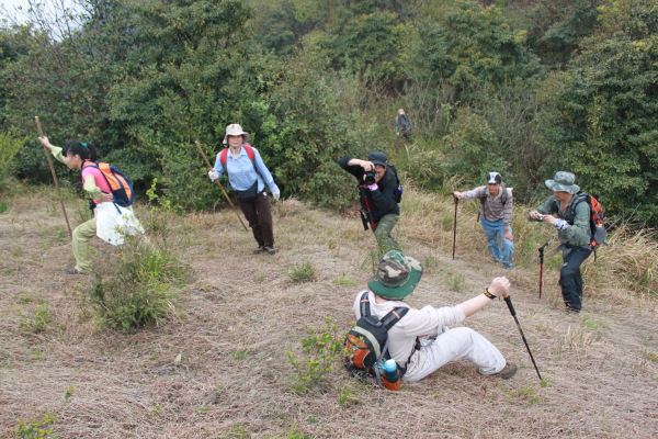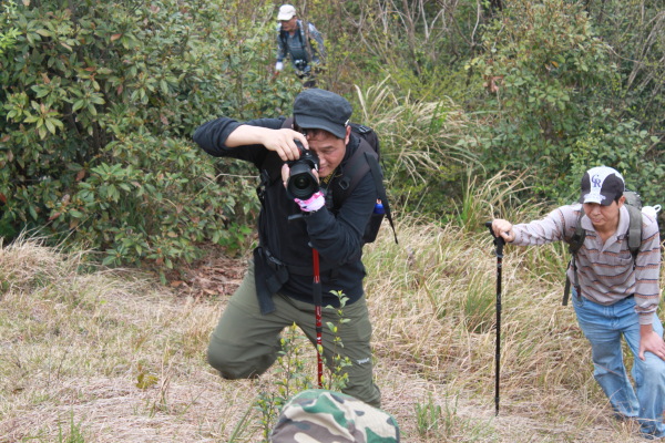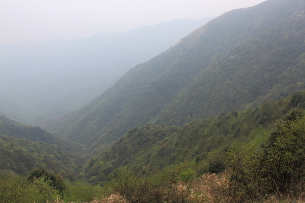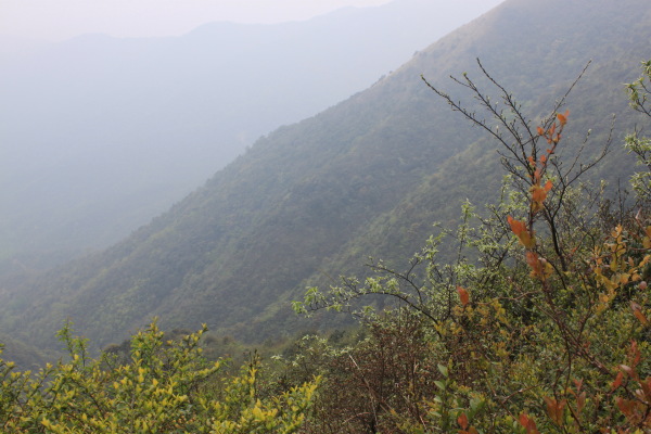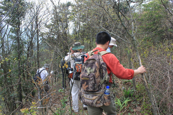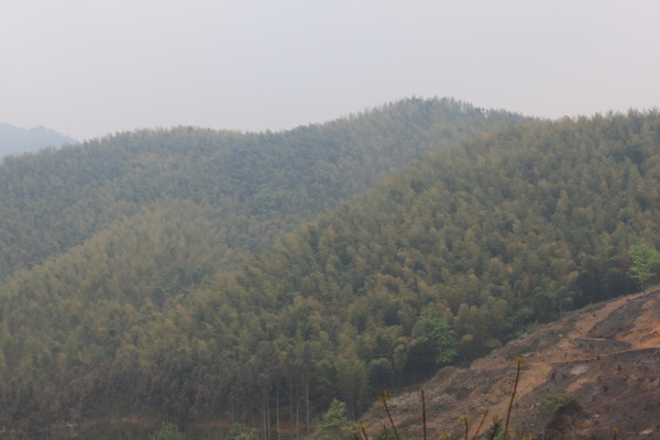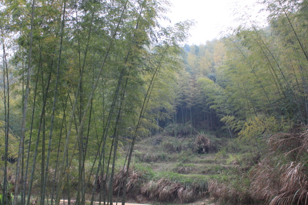 我们这次要爬的山刚好是佛冈、从化交界的地方,连绵几座山,因此,从从化、佛冈方向均可上山,我们选择的是佛冈的青竹坑村开始登,这里半山以下基本上是竹子,哎,忘记问普洱大哥这种是什么竹子。连绵的竹海,微风吹拂,绿绿的竹叶像波浪一样起起伏伏,让你感觉的置身章子怡早期拍的某部电影的场景一样,养眼的绿色让你心旷神怡。