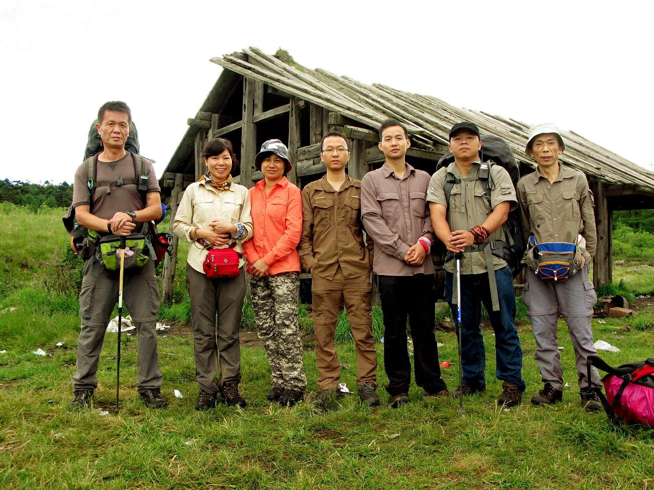 这时开始起雾了。知道雾的厉害,不敢再逗留,三人终是艰难的起来,继续前行。不知走了多久,通过对讲机,知晓赵哥和小萍已在前面的一个山坡的垭口等我们,好象看到了曙光,三个人忽然间都加快了脚步 。终于,远远的,看见了赵哥和小萍就在百米开外。。。噢,差不多到大爷海了,也就离拨仙台近了。。。