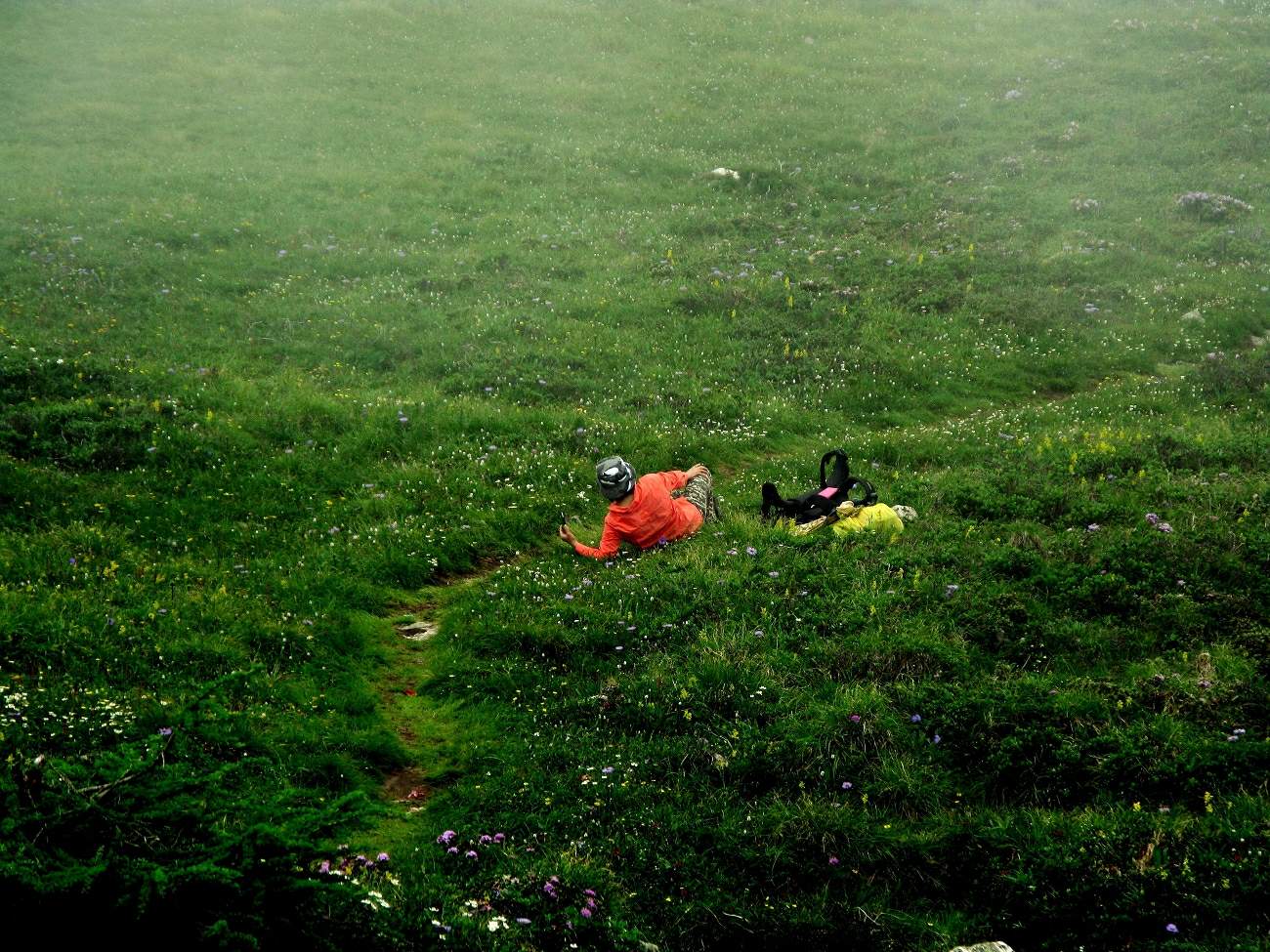很快,我们就穿过了跑马梁,开始进入高山草甸。跑马梁的兴奋过后,加之海拨增高,开始有疲惫的感觉。赵哥和小萍倒是还走得轻松,一路领先。渐渐的,我就落在他俩的后面,山猪和老潘也是走走停停,西文和祥哥早就落在后面,不见他们的影子了。
