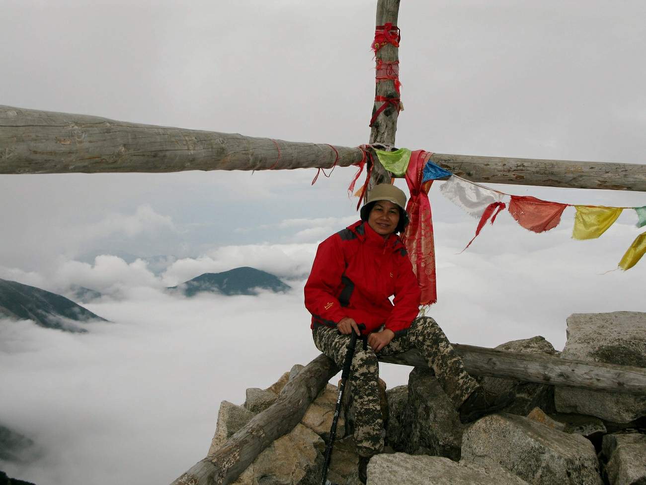 李白曾写过一首《登太白峰》诗:“西上太白峰,夕阳穷攀登。太白与我语,为我开天关。愿乘冷风去,直出浮云间。举手可近月,前行若无山。一别武功去,何时复更还。”这一刻,在这太白之巅,我们伸展双臂,凌风欲飞。茫茫秦岭,千山万壑,层峦叠嶂,都在我脚下!山风猎猎,吹散了浓雾,远处的云海若隐若现,变幻莫测。。。多少路途的辛苦与磨难,此时,都化作最灿烂的笑容。