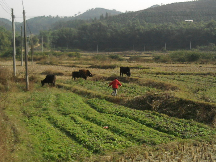 行经农田,见几个农家小女孩在田间放牛玩耍。湾仔甚为激动,冲着小女孩挥手大呼:“Hi,靓女!~~”