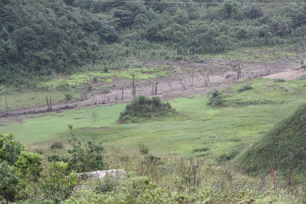 从机耕路望下去,这就是没有水的仙女湖。