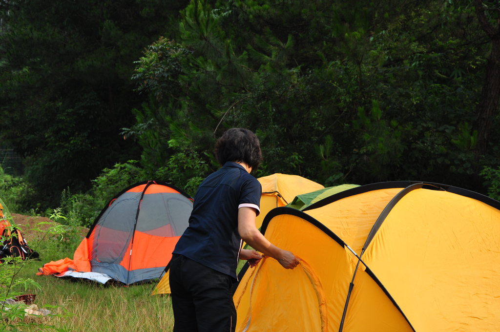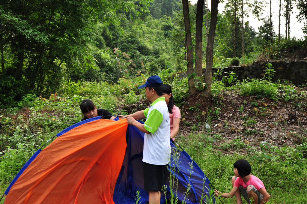 本来一个人也能搭建的帐蓬 大只佬一家人在搭建一个帐蓬 温馨无限 羡煞旁人