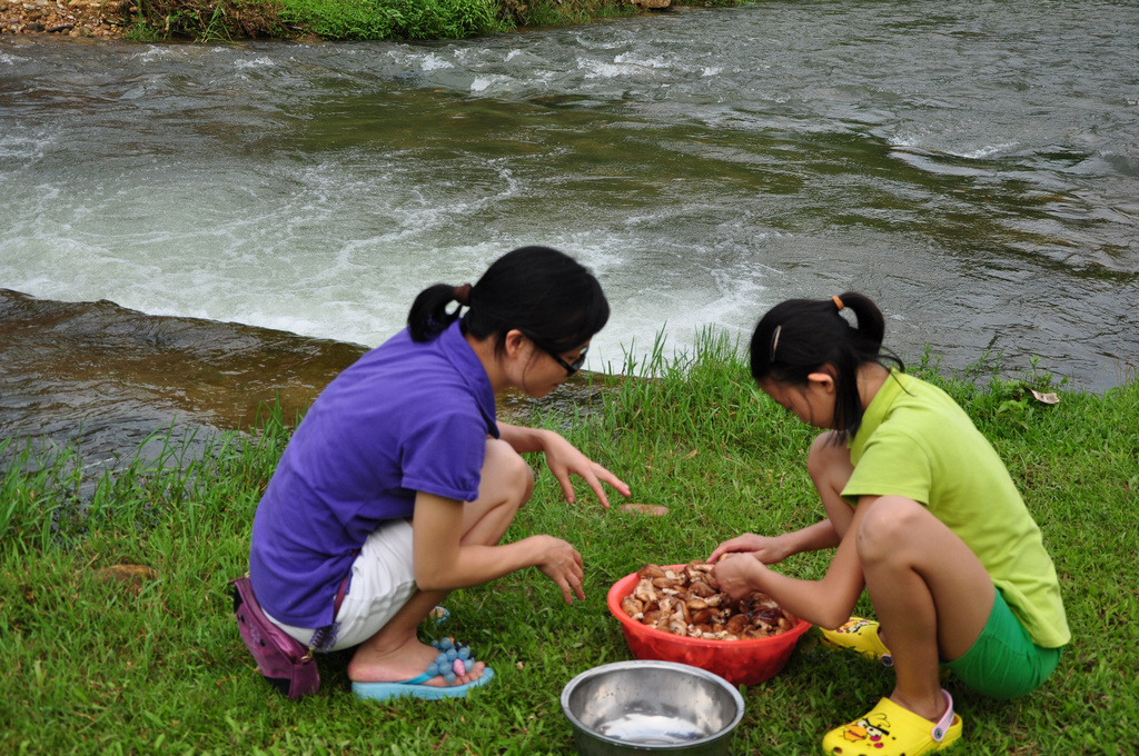 角色家小姑娘和咋们美女小骨同学洗菇记 真勤快!