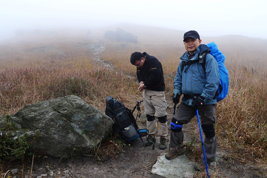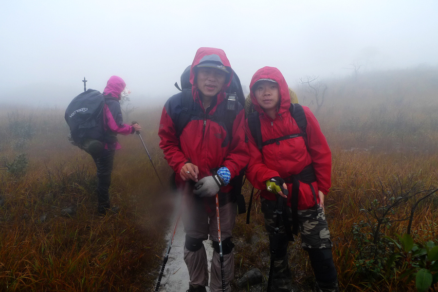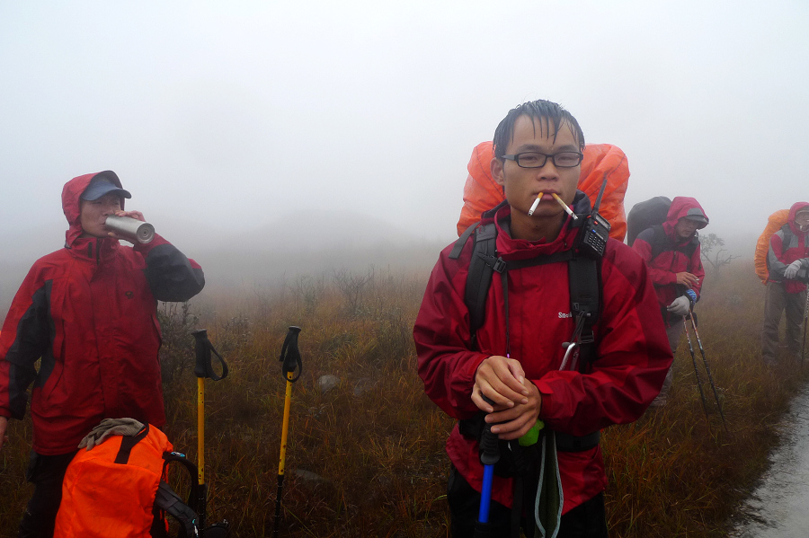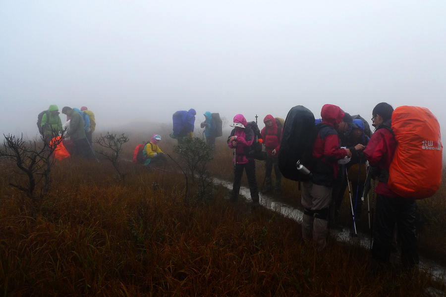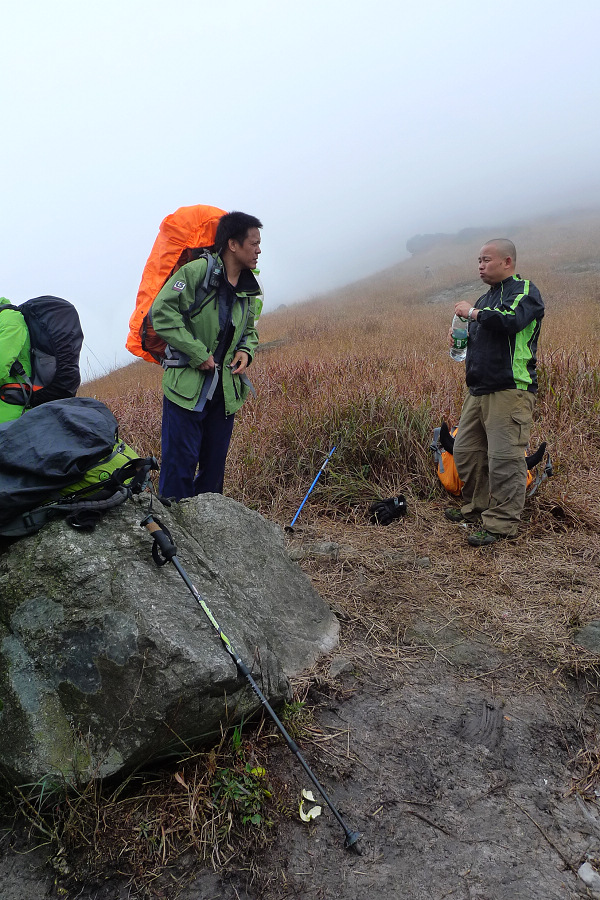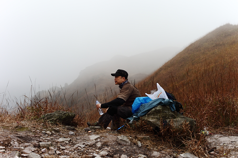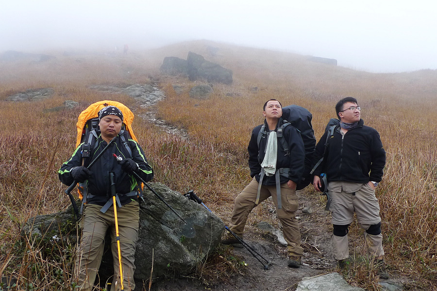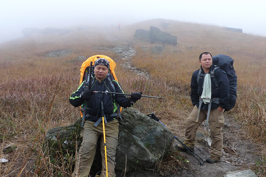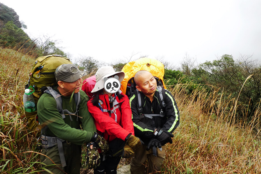 图8、 D3继续狂风密雨浓雾 到高嶂顶停下来休整的时候 大师冒着枪林弹雨 冒着小卡片的生命危险 抢拍了几张风雨中的众生相 导致小卡片进水雾 片片一片模糊 呜呼哀哉 大师自己一张清晰的片片都木有