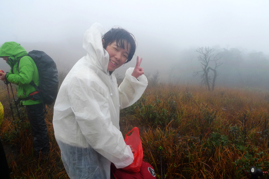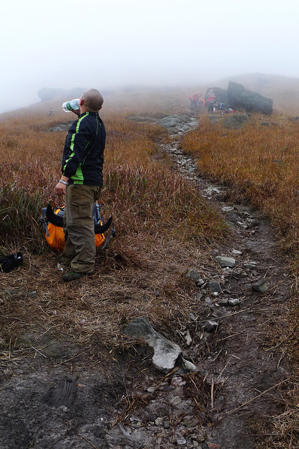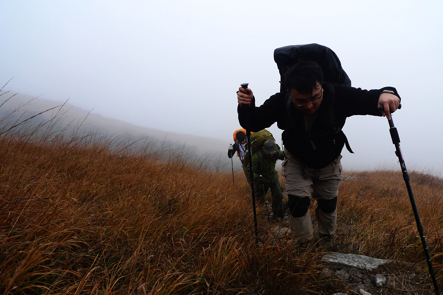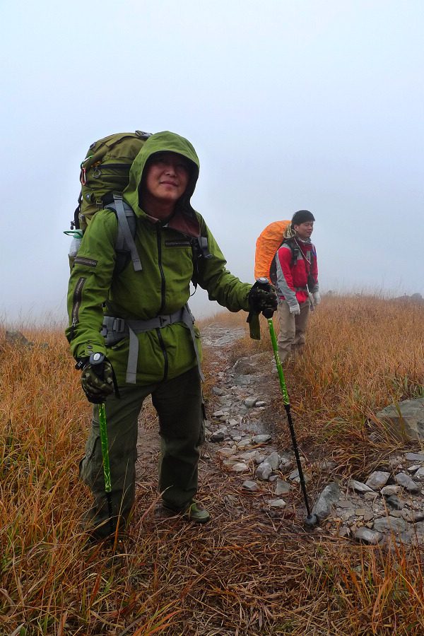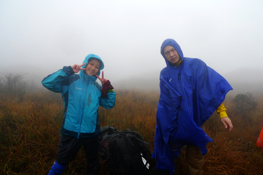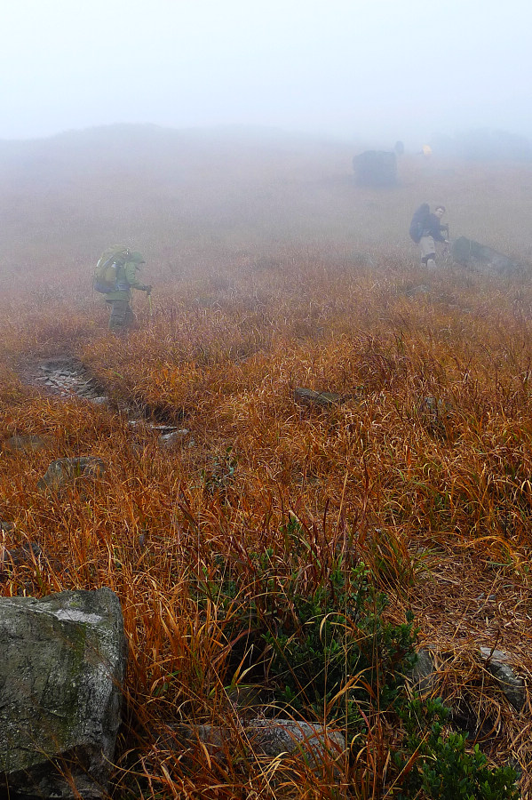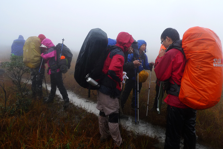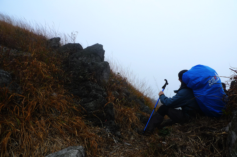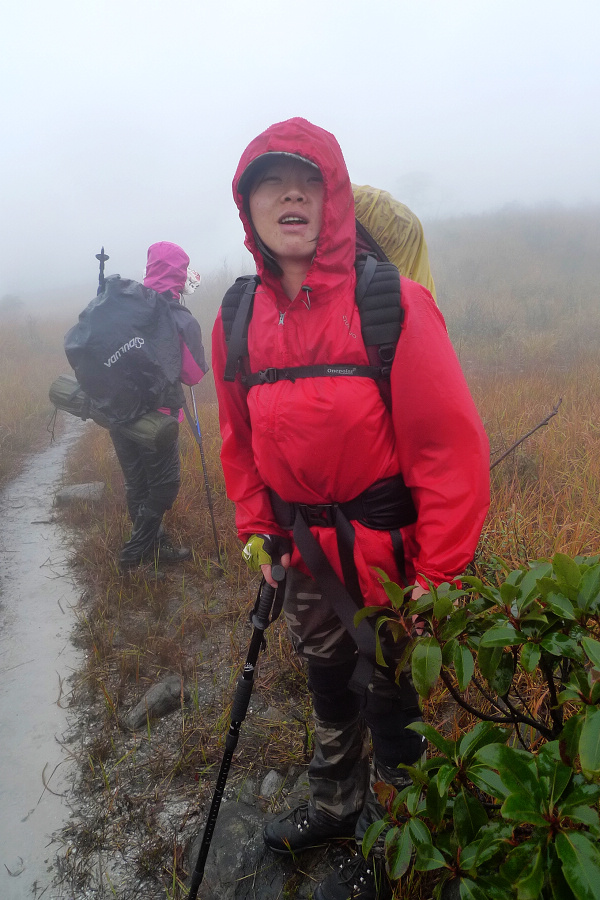 图8、 D3继续狂风密雨浓雾 到高嶂顶停下来休整的时候 大师冒着枪林弹雨 冒着小卡片的生命危险 抢拍了几张风雨中的众生相 导致小卡片进水雾 片片一片模糊 呜呼哀哉 大师自己一张清晰的片片都木有