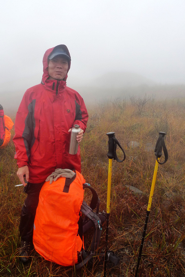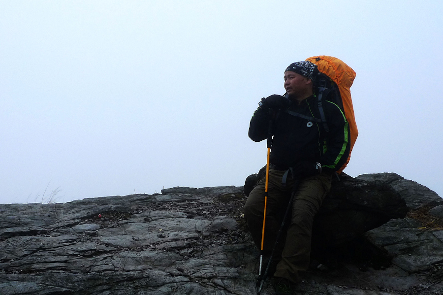 风不停、雨在下,伙夫一直想用酒麻醉自己,可惜63度无人愿意分享,后来只能找着一班喝着杨梅酒、很有可能一路饭没吃好在宣泄着自己情绪的哥们不停地干杯,杨梅酒瓶全喝空了、带着满足感进帐混混就睡了、迷迷糊糊做了一个登顶的梦,醒来、像逃难似地把行李胡乱地打包好、往肩上一放,顶着风雨、朝着回家的方向疾步飞奔。