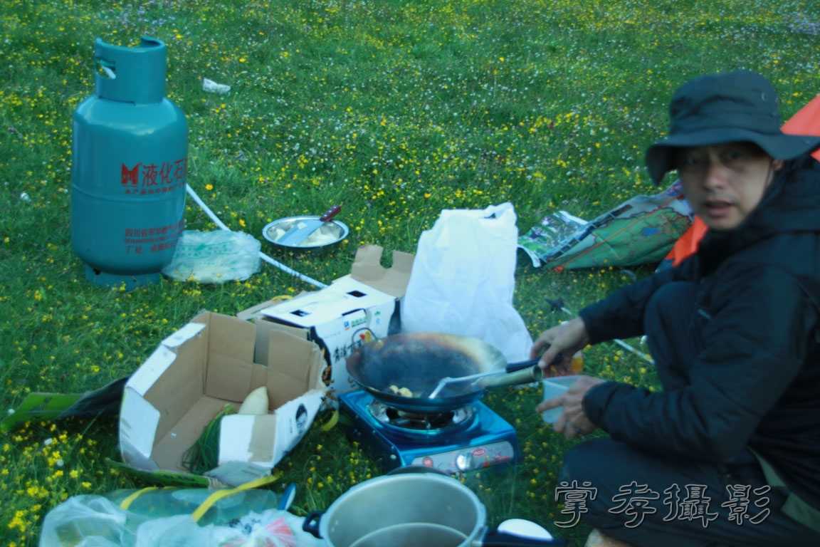 我们到达目的地,天气已渐黑,我和老莫先行,拿出架撑,吓得旁边几队人马一跳,在4025米的海拔上,竟然有如此装备精良的厨具,令其他驴友折服。