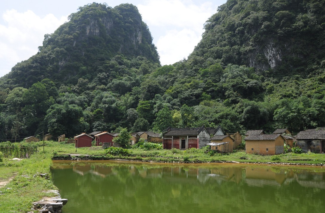 话说大雄从村民口中探听出这有几个神秘的溶洞,溶洞里清流常年不断,洞口就在隐藏这照片左边山头的下方