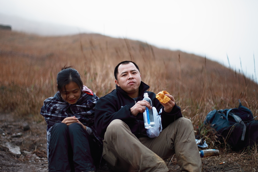 第二天一大早,语嫣、kk、文哥、夜归人、浮云、雨珊等几个人上顶峰拍毕业照去了。虽然这种天气早没有风景可言,日出是不可能。但个中的意义更多成为一种标志,为的是功德圆满。至于故地重游的我们,没有多少动力在这么糟糕的早上起来,都缩在睡袋享受多一刻的温暖。