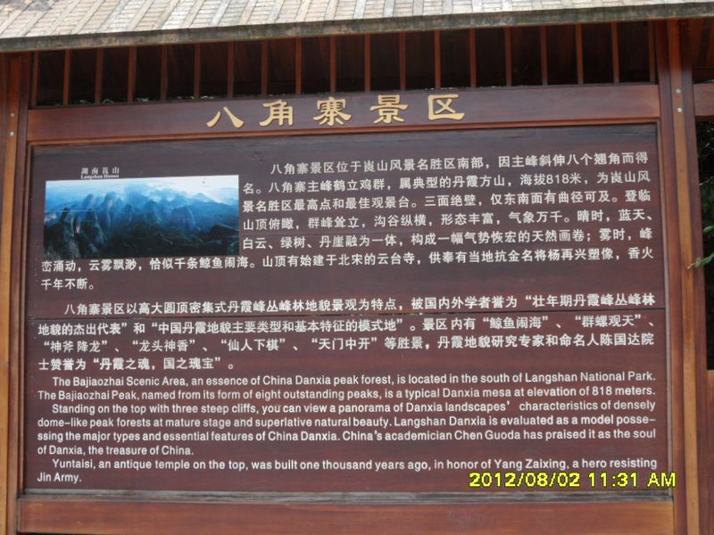 这是崀山八角寨的主峰,上山很辛苦,可租马上山,不懂骑马者就没招了,上得山来,八角寨全景尽收眼底