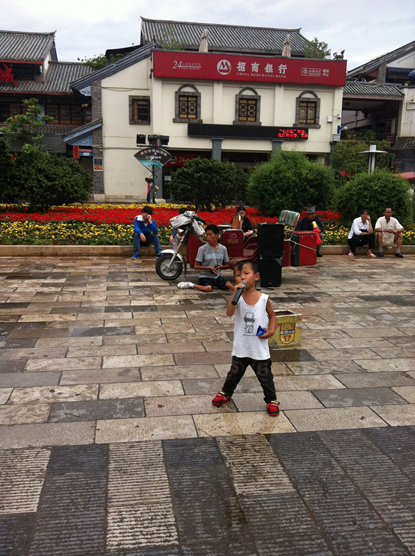 曾经一直以为自己总是没别人幸运,常常郁郁寡欢,不喜欢自己的童年,不喜欢现在的生活,在昆明金马碧鸡坊看到一小男孩和一残疾的年轻男孩在乞讨,小男孩在很卖力的唱歌,大男孩在后面坐着,苦痛的神情在渴望着行人能给予他们俩钱,小男孩的歌声很伤感,真不该他幼小的年龄应有的,我不知道他们经历了什么以至于会这样,但我知道,有头发谁想当秃头,不是吗?走出外面的世界多看看,用心体会,是否,真觉得自己不幸福了?想不明白,亦看不透~ ~ 我上前给小男孩钱,把包里的饼干也给了他,王兄对我说,他们的收入比你高多高多的了~~~我无语了,如果可以但愿他们是物质方面真的可以很好,世间能少些悲伤,多些欢乐,这不好吗?