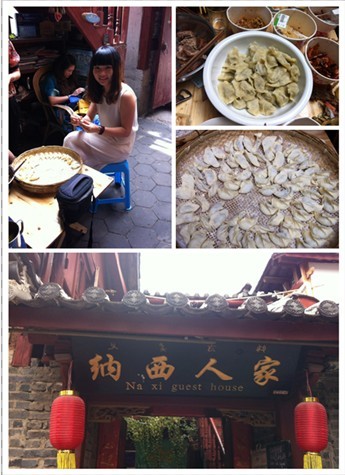 那天苏老板的家人从昆明开了八个小时的车到达了丽江,他的妈妈不但很能干,还很贤惠,午餐纯手工制作饺子宴,我的包饺子的三脚猫功夫也用上了,包得没有卖相,值得表扬的是不会露馅呢。来自上海的婷婷,包饺子非常有一手,外观好看,速度快,我问她:怎么这么厉害,包得好好看喔。婷婷说: 在法国生活了六年,几乎每天都是自己亲自煮吃的,所以锻炼得不错。