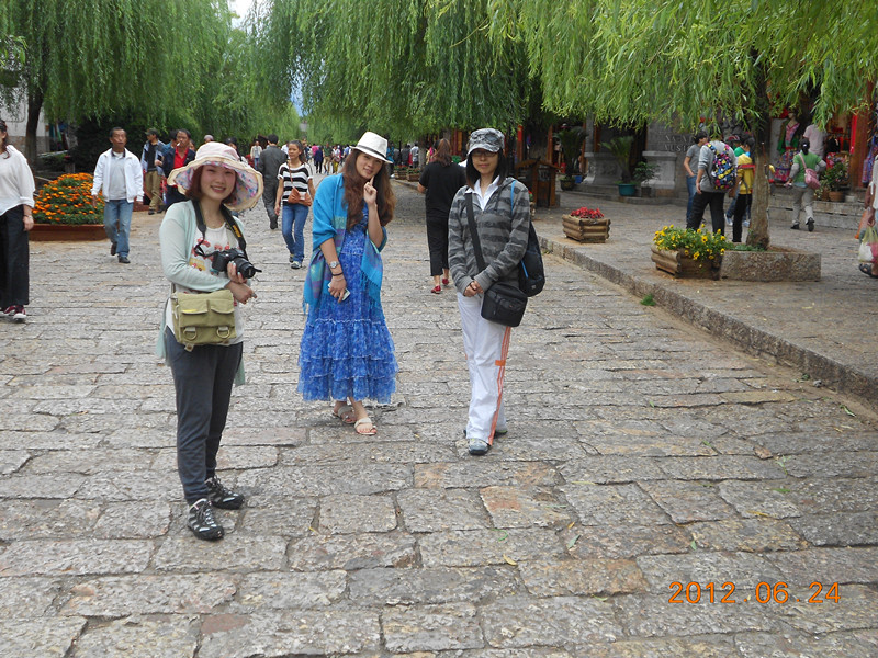 该时间回客栈与更多 的队友集合了,从东莞来的三个小妞从束河耍回来找我们会合了。昆明过来的飞扬大哥也是从束河耍过来找我们的,飞扬的到来,蛋蛋似乎很排斥他,似乎也介意他要加入我们行程中,飞扬也似乎感受到了这种异样,不管我怎么说服飞扬加入我们队伍中,似乎都是那样的苍白无力,最后他没有加入的我们的行程一起走,在丽江参加了散团去梅里雪山四日游,队里少了一个摄影发烧友,这对于我来说,真心的遗憾。飞扬临走时,说要给我拍几张照片作为留念,我说好的。拍了几张,效果不错,他说回去昆明再给我传,然后就分别了。