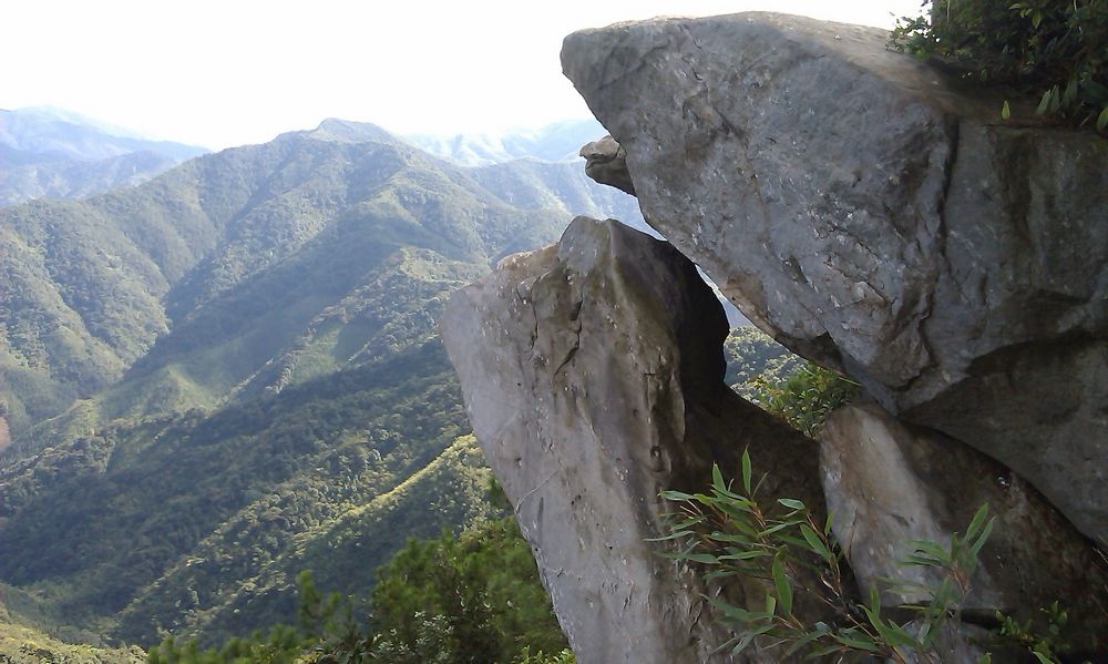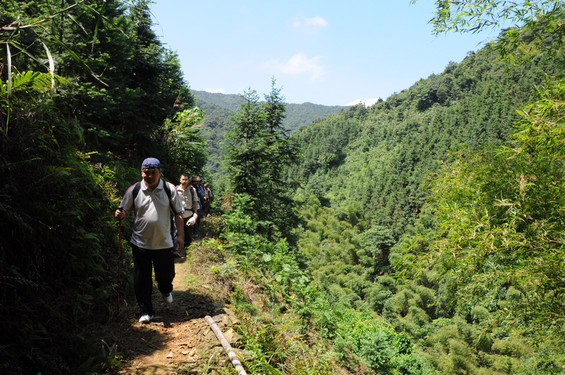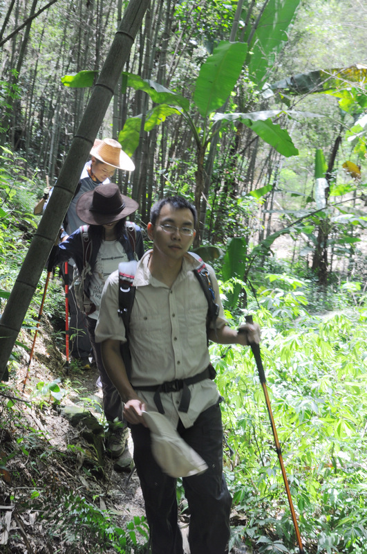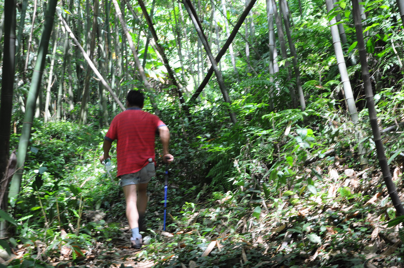 赖伯是误信了老妇人,还是有意去冒险,把我们一路人引上了一条艰辛的穿越之旅。庆幸的是,找回了一条容易下山的路。下山路上有人得意说,“不喜欢走回头路。”一路上有说有笑,有说到此次回顾命名为“九男(一)女”混迹北流顶。回顾是我写的,命名就当然是我自己来了,嘻嘻!!!阿强开路没路找路仗着一根枯藤踏出了一条新路。农夫新鞋挤脚想要原路返回,后来又不知为何跟上了大部队,最后差了一点点没登顶留下了点点遗憾。柴可夫银河带病登顶,说下次不再来了,是真是假??? 6K一路上还是不停的拍他喜欢的植物,还不理我们感不感兴趣,自得其乐的给大伙介绍着。小骨逮到时机就赖在树阴下不愿动,累得不停问到了没,在听到将是第一个登顶时,找到了动力,就是快1.3S,也第一,嘻嘻。北江美石定是拍下了很多漂亮的相片,半路下车说要拍飞来湖的夕阳,这就是摄影迷???因为记忆力不是很好,还有几个驴第一次见,没记好谁是谁……哪次上山没带点东西回来的,这次顺手钜了几根青竹当拐杖用用,只是我的那根被遗弃在半路上,不过要找在“山顶”也找得着。