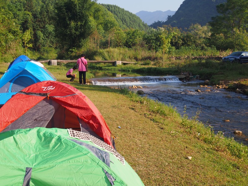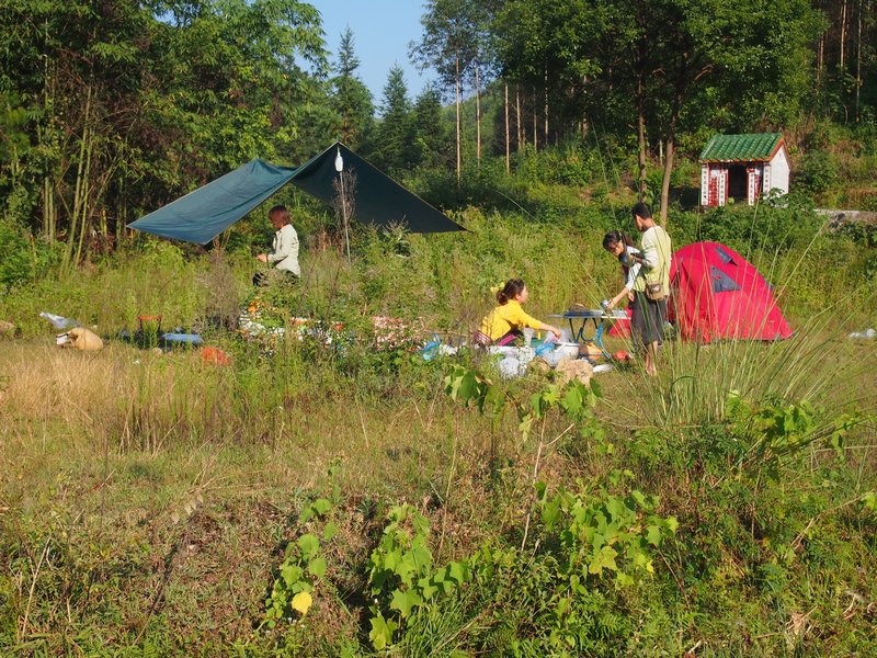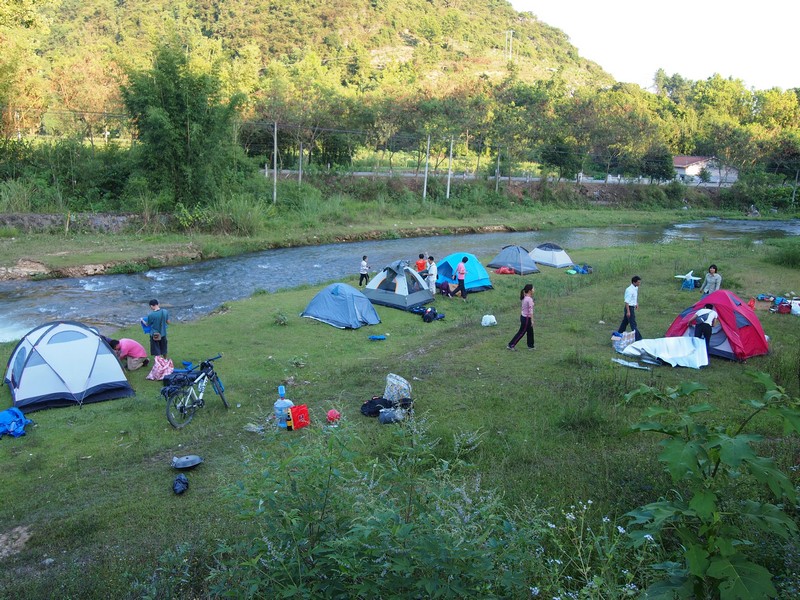出行有13人,其中4个小孩子,12个人坐两台车,下午出发。我自己骑着单车一早就出发了,我的任务有两个:1.买豆腐。2. 找营地。