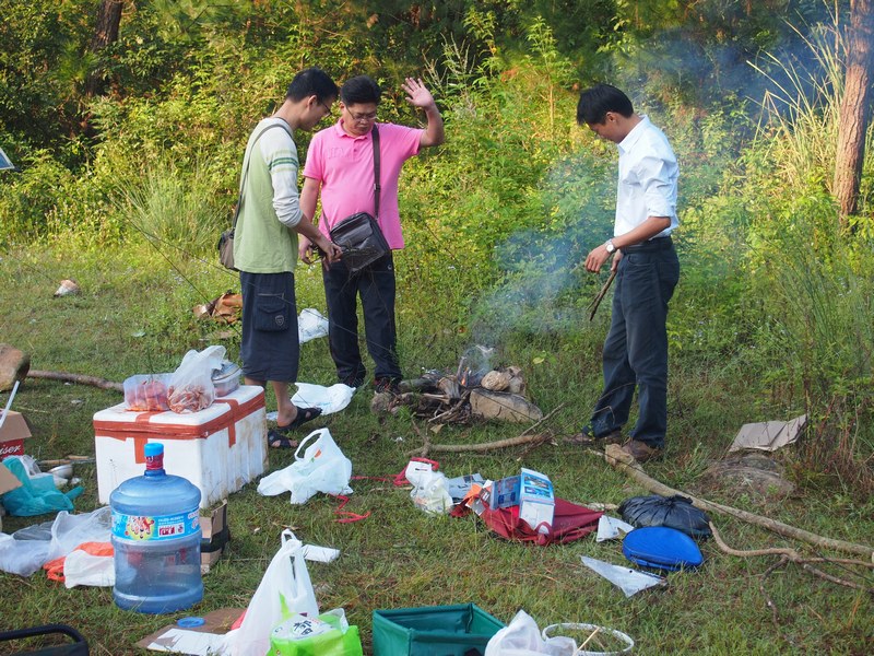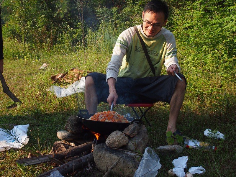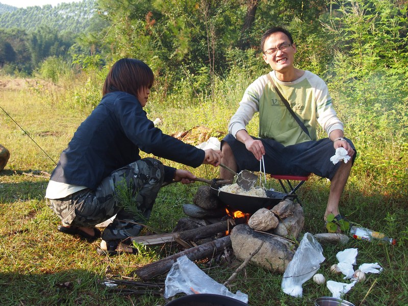 对于新手来说,组织活动最好方法就是学习老人的经验。就像石头姐一样,自从决定组织一次露营之后,就到处翻攻略定地点和路线。曾经的目标有月亮湾、沙扒镇、阳江野海滩,最后都因为太远被否决了。最后定下了英西峰林,但是苦于不知道在那里找营地,最后还是那个烤羊的贴子里面找到了这个“英西峰林最好的露营地”。石头姐打电话给蓝色遐想,回来报告说:地方和容易找,就在路边,到了岩背就看到了。于是,地点就定下来了。但就是这句看上和简单清晰的话最后让我很头疼。。。