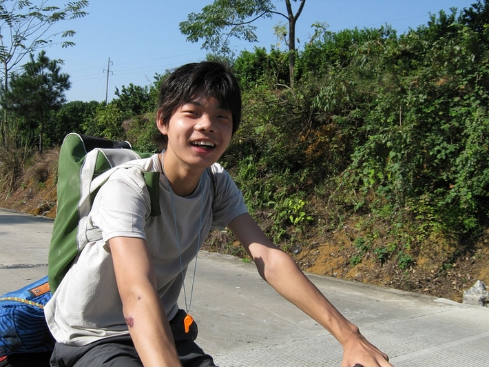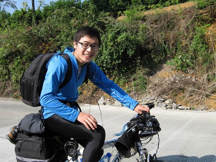 本帖最后由 怡草 于 2016-7-11 19:32 编辑 快到阳山,路上有骑车少年,技术吓人:dizzy: