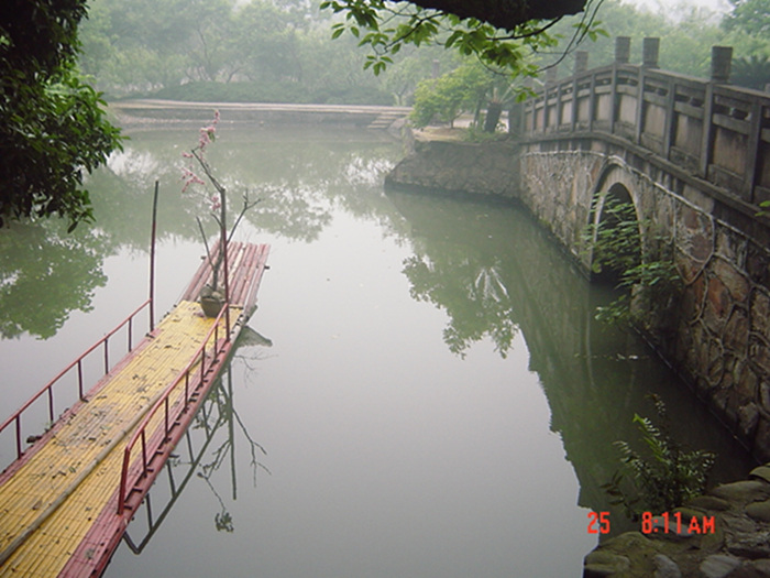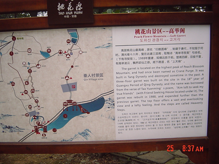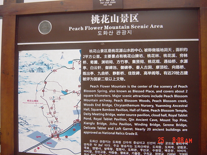 晋太元中,武陵人捕鱼为业。缘溪行,忘路之远近。忽逢桃花林, 桃花源 夹(jia)岸数百步,中无杂树,芳草鲜美,落英缤纷。渔人甚异之,复前行,欲穷其林。 林尽水源,便得一山,山有小口,仿佛若有光。便舍(shě)船,从口入。初极狭,才通人。复行数十步,豁(huò)然开朗。土地平旷,屋舍(shè)俨(yǎn)然,有良田美池桑竹之属。阡(qiān)陌(mò)交通,鸡犬相闻。其中往来种作,男女衣着(zhuó),悉如外人。黄发垂髫(tiáo),并怡然自乐。 见渔人,乃大惊,问所从来。具答之。便要(yāo)还家,设酒杀鸡作食。村中闻有此人,咸来问讯。自云先世避秦时乱,率妻子邑(yì)人来此绝境, 不复出焉,遂(suì)与外人间隔。问今是何世,乃不知有汉,无论魏晋。此人一一为 (wèi)具言所闻,皆叹惋(wǎn)。余人各复延至其家,皆出酒食。停数日,辞去。此中人语(yù)云:“不足为(wèi)外人道也。” 既出,得其船,便扶向路,处处志之。及郡(jùn)下,诣(yì)太守,说如此。太守即遣(qiǎn)人随其往,寻向所志,遂迷,不复得路。 南阳刘子骥(jì),高尚士也,闻之,欣然规往。未果,寻病终。 后遂无问津者。
