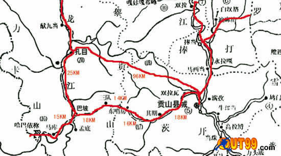 徒步路线:贡山--其期--东哨房--南磨王垭口--三队--巴坡--孔目--贡山 线路评价: 徒步线路险恶。毒虫,山蚂蝗,湿滑的悬崖小路,均对徒步者构成极大的威胁。经独龙马帮驿道进入巴坡,除高黎贡山嘎足保护站,其期保护站有人值班外,再无人烟。对徒步过程中可能出现的意外后的救援救治,通讯联络等将是及其困难的,甚至于是灾难性的。
