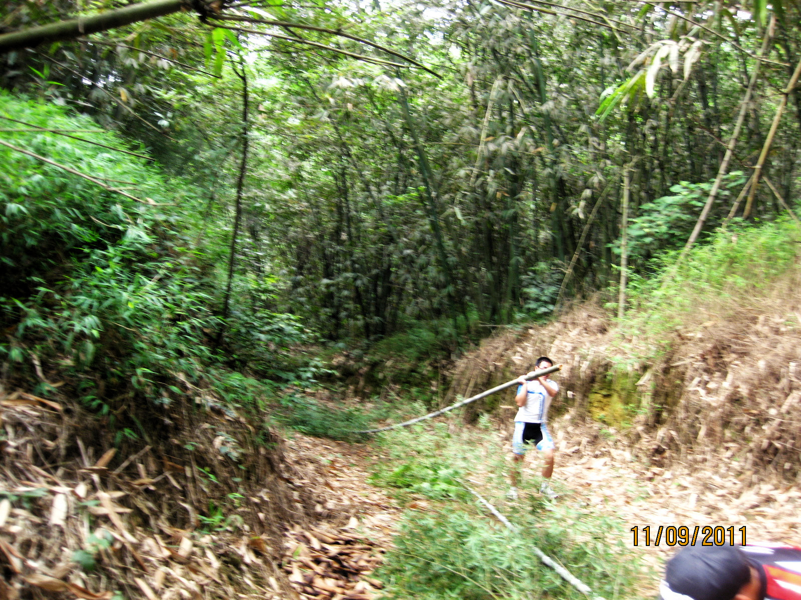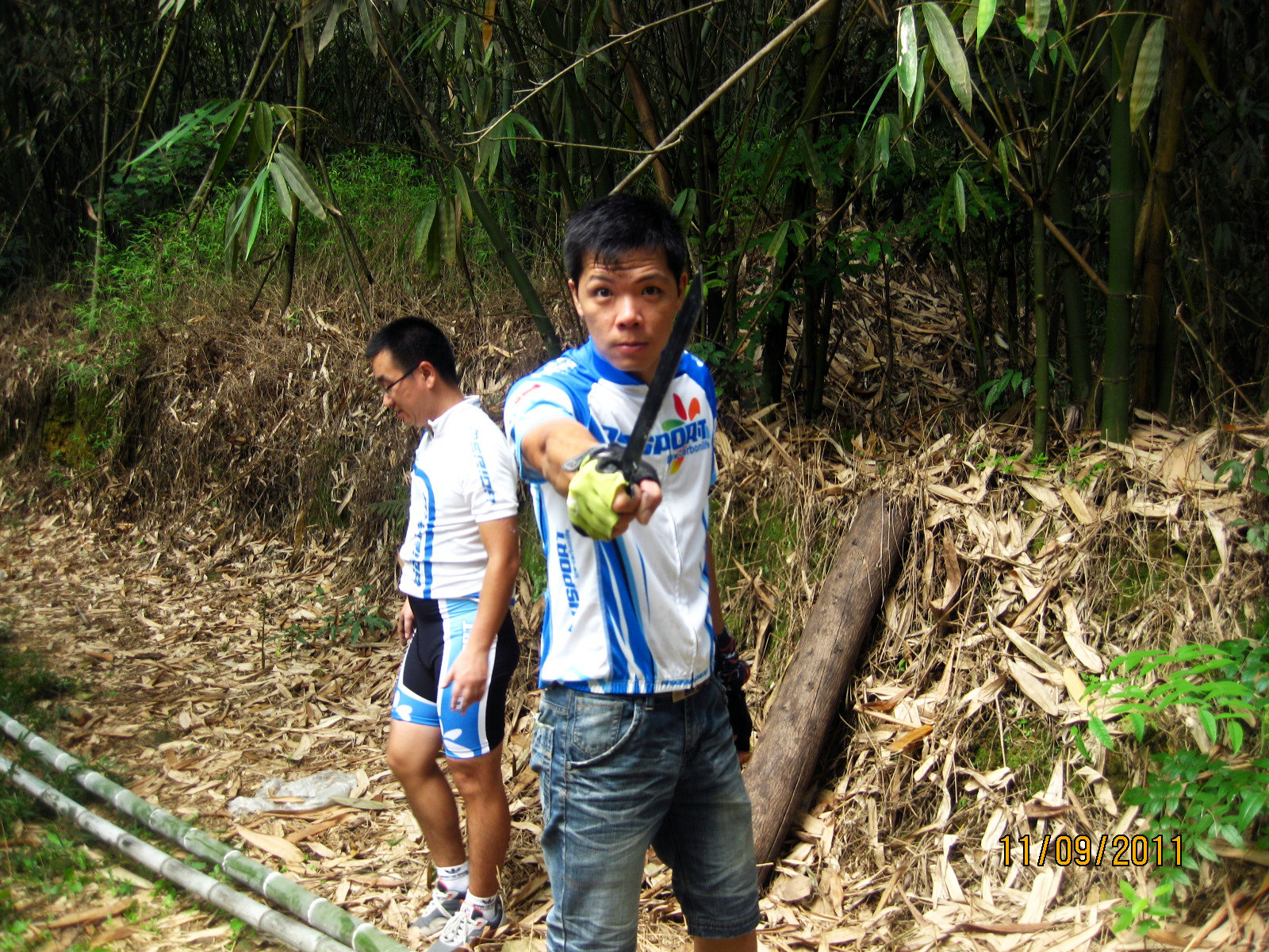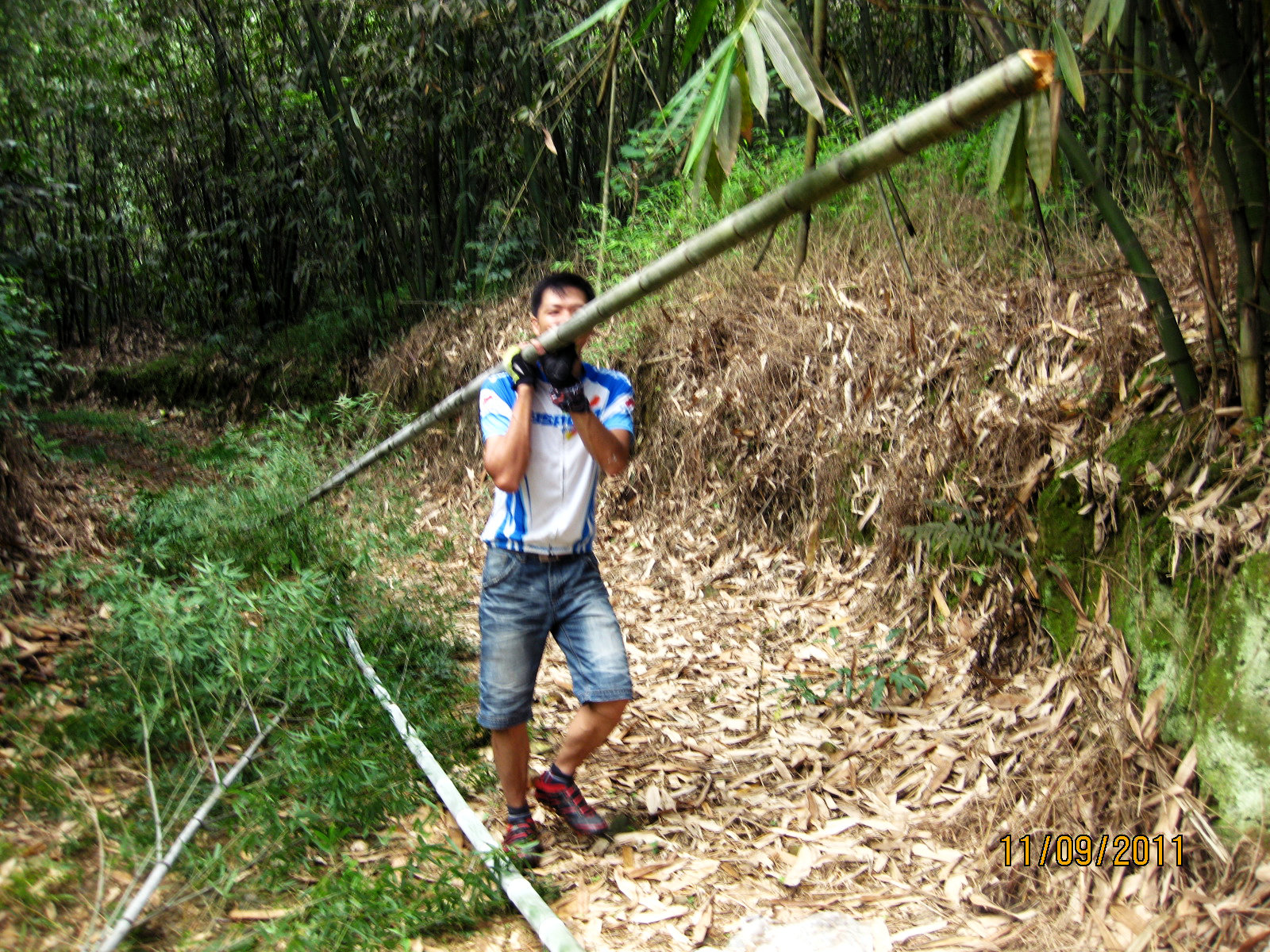 牛牛给了二十元给竹林 林主,我们砍了她五条大毛竹