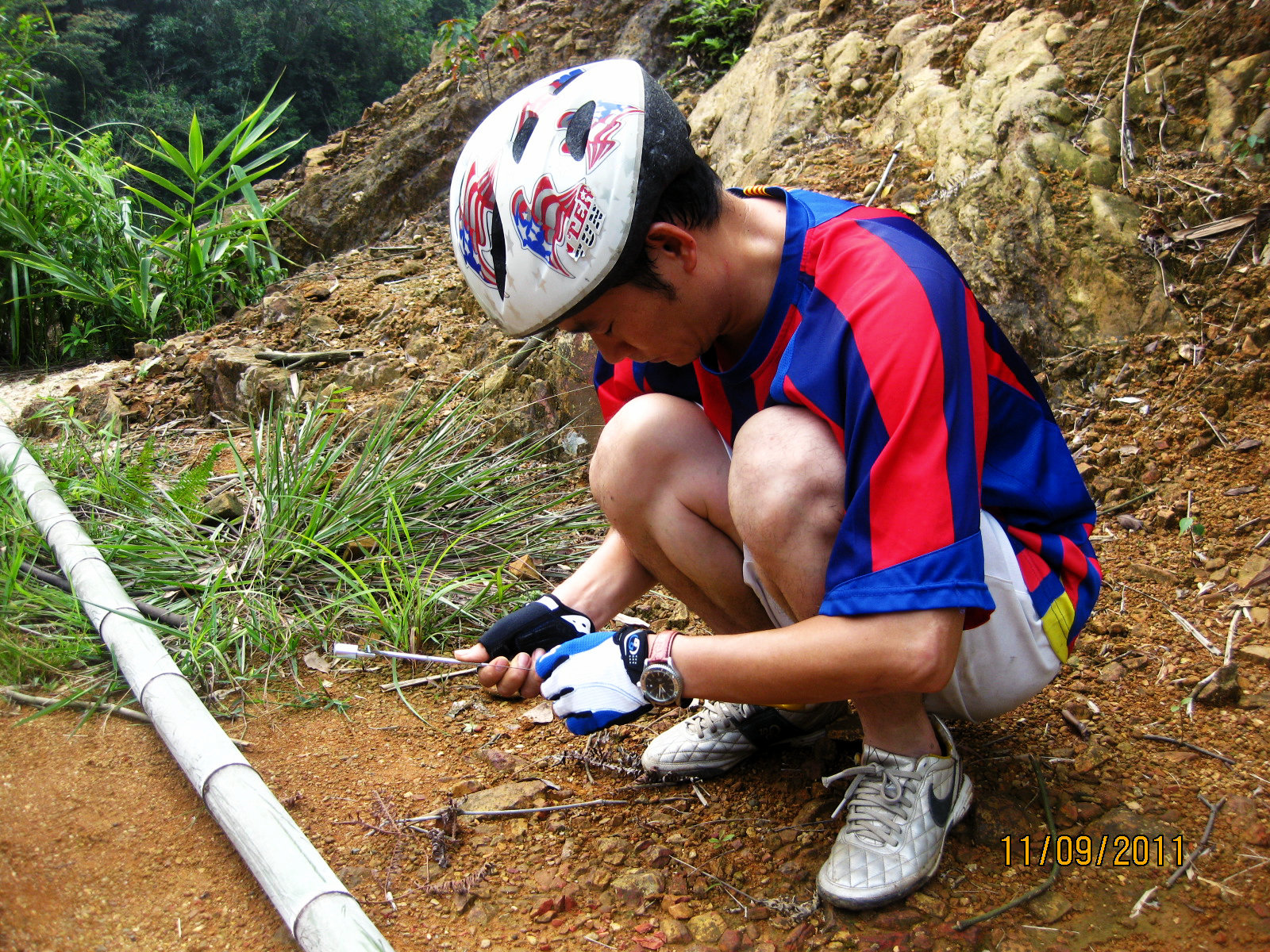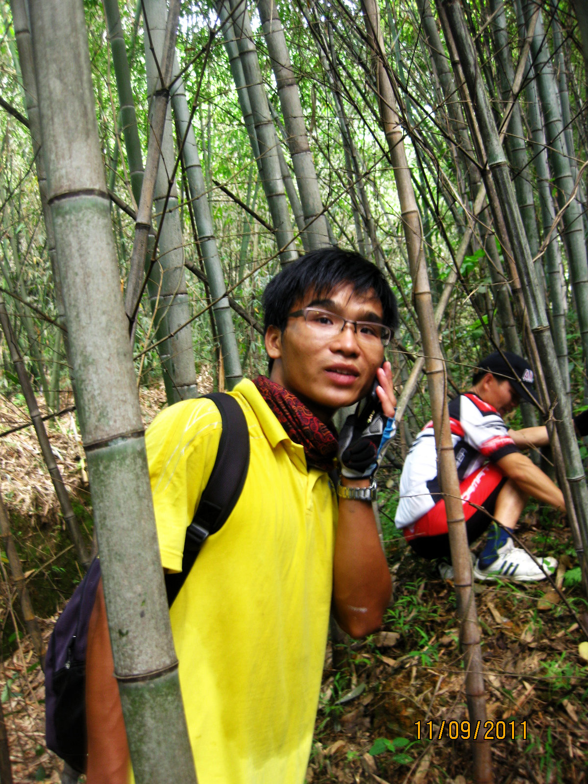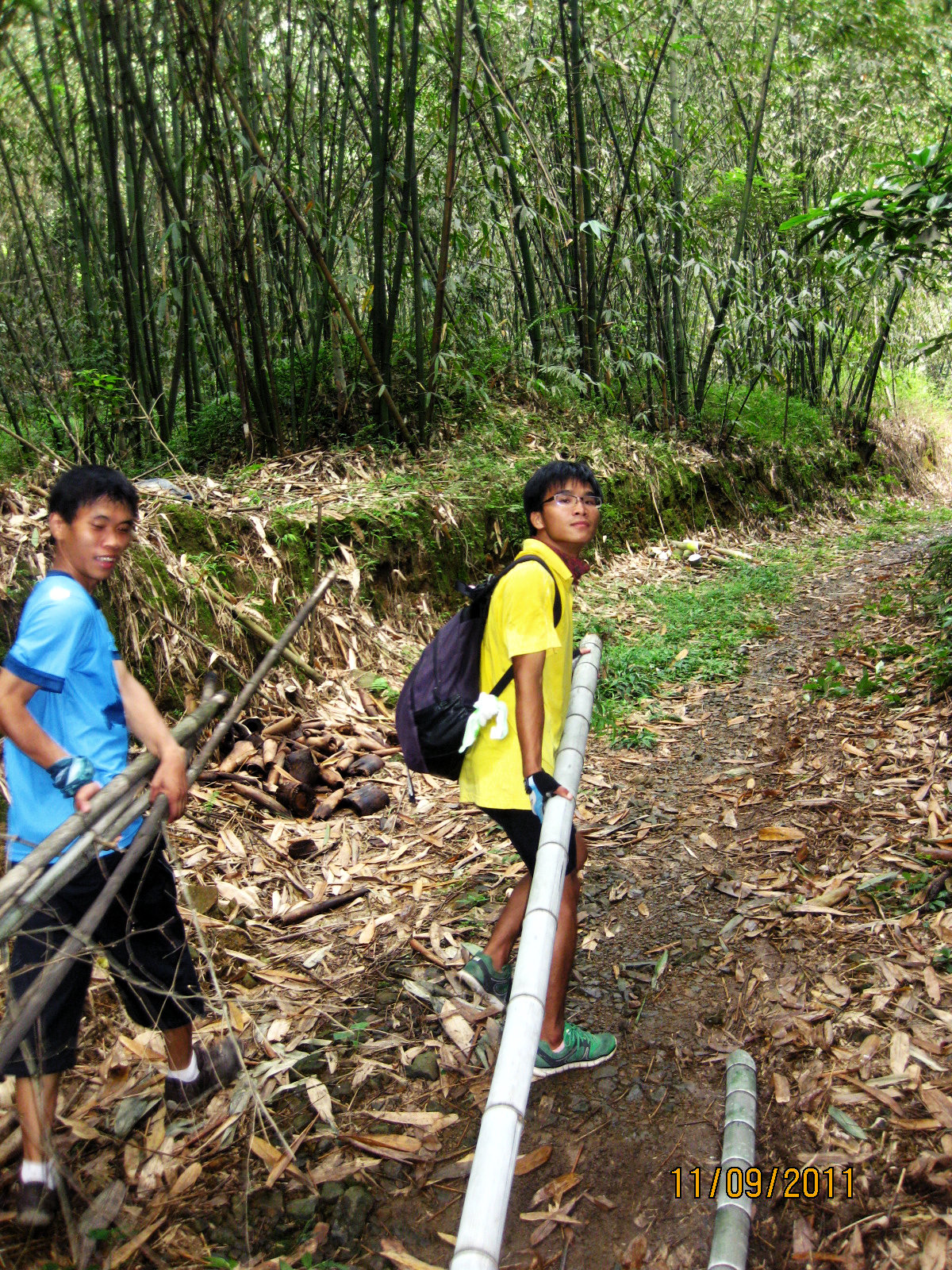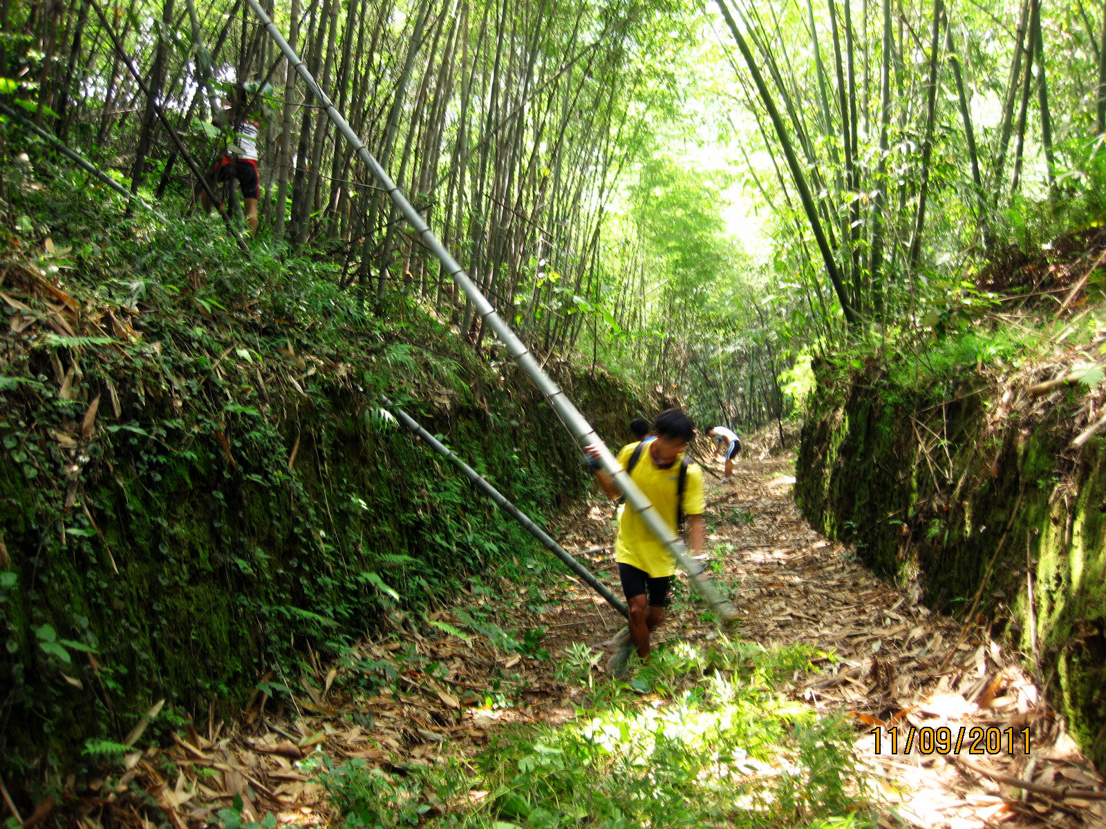 牛牛给了二十元给竹林 林主,我们砍了她五条大毛竹