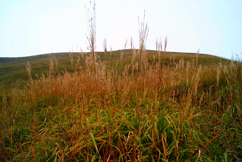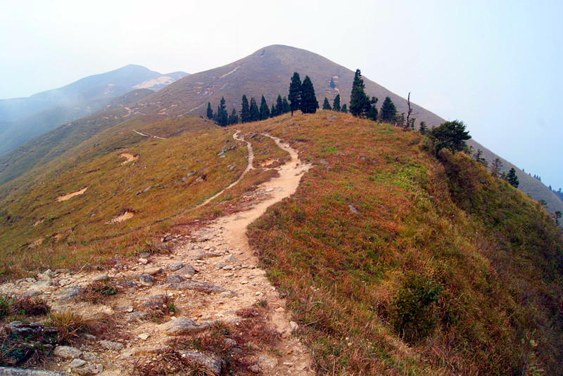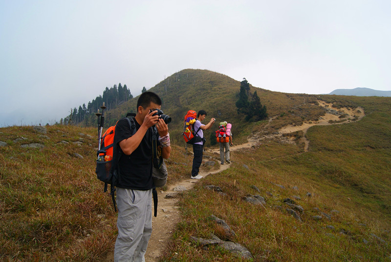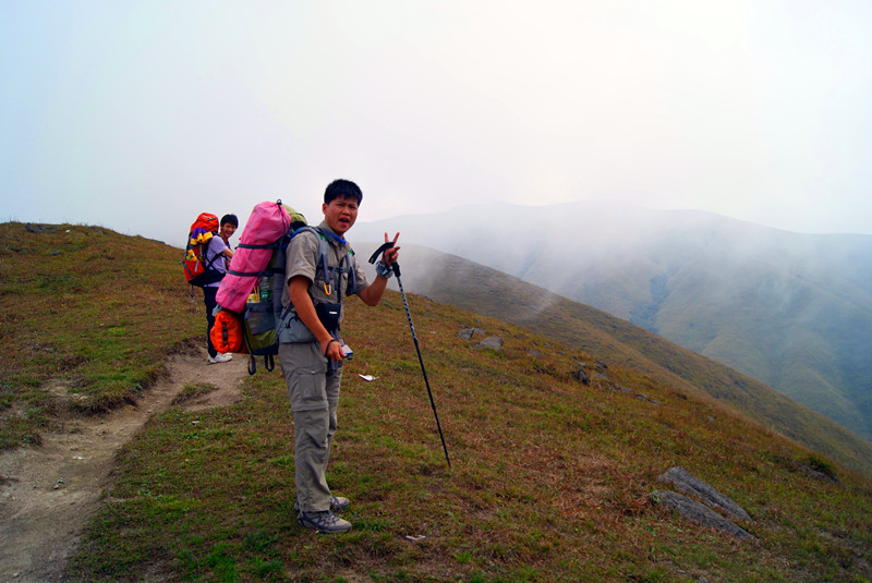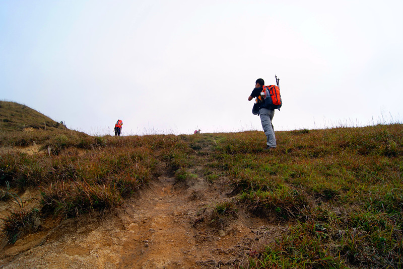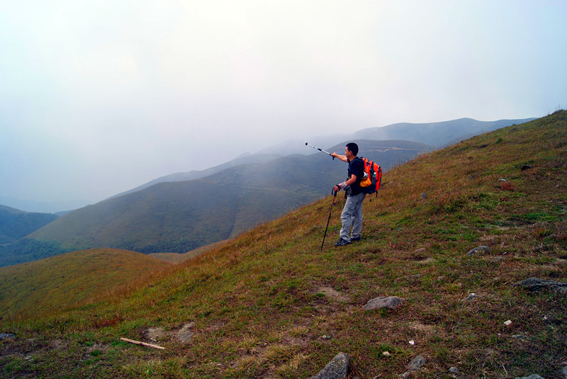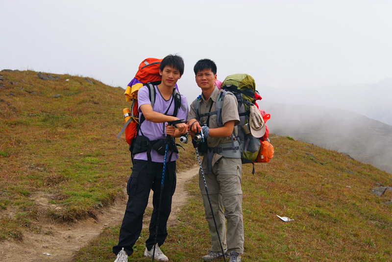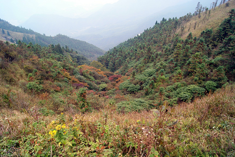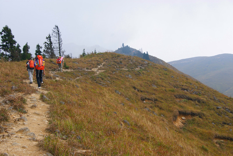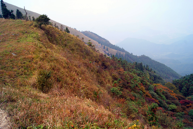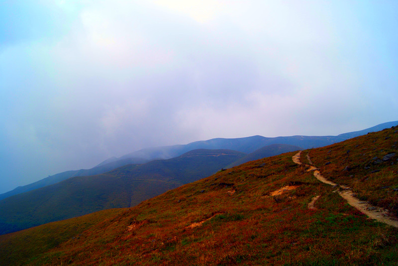 我们收起双杖轻松地走在通往金顶的九龙山顶上。