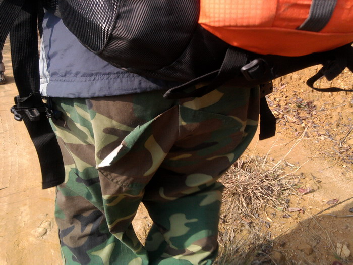 赖伯一路上都在取笑湾仔左边屁股上的裤洞,湾仔称此为紧急备用干粮袋,当粮食紧缺的时候,用手从洞洞往里一探,就可取出囊中物以充饥。