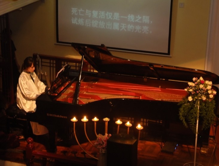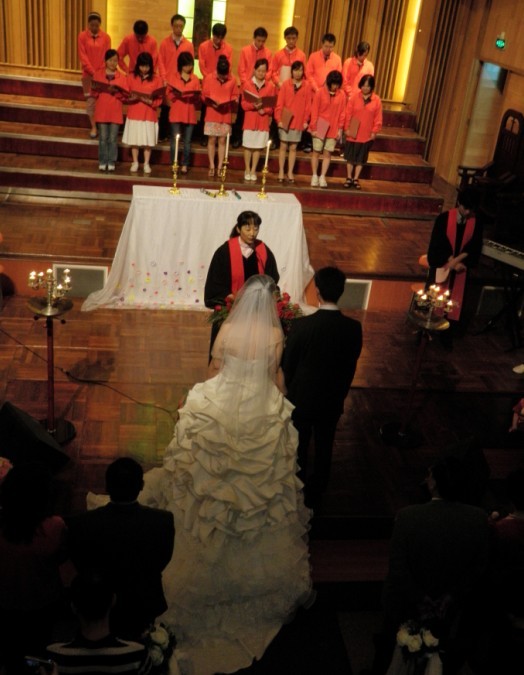 对她而言,可能很感动!于我,已经不是什么新鲜和神秘的事了!因为在诗班里常为婚礼献唱!