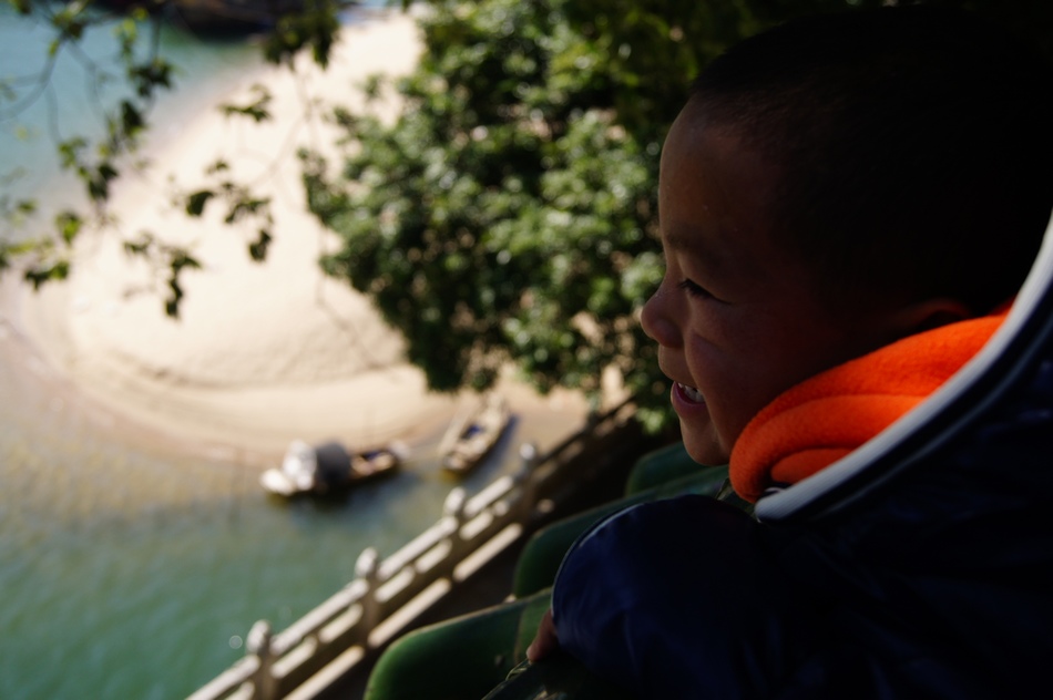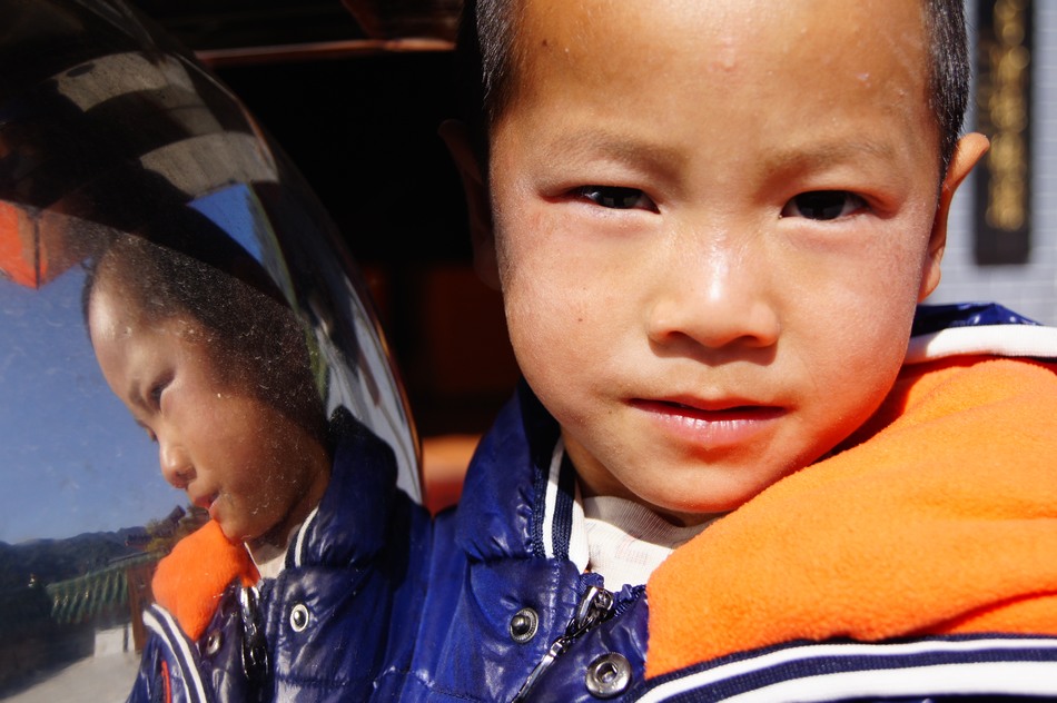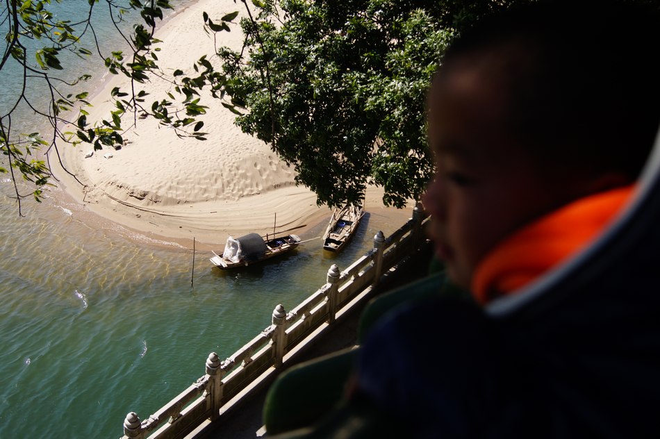 不知叫什么题目。在飞来寺遇上这小孩,粘上我就围着我转,叫我去这去那,从义工那得知孩子由婆婆带着相依为命,晚上就住在小船上,小船小得脚也伸不直。小孩身上的衣服也是义工给买的。小孩口齿伶俐,名字叫洪仔!