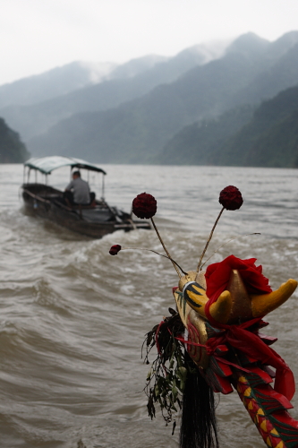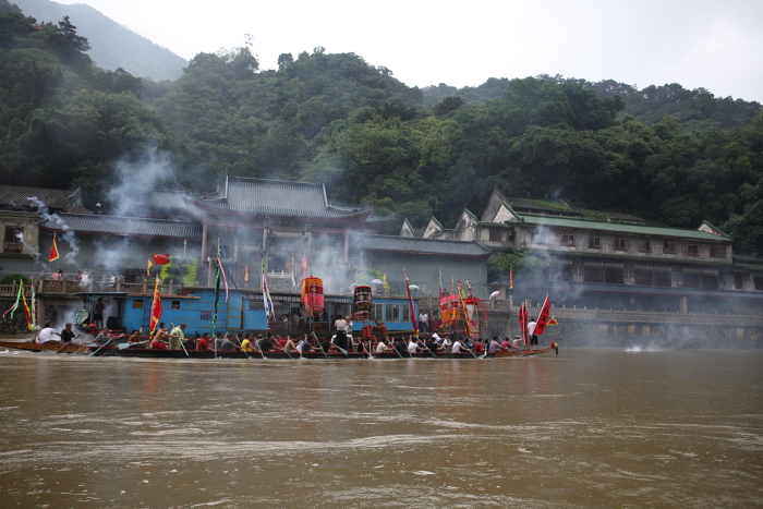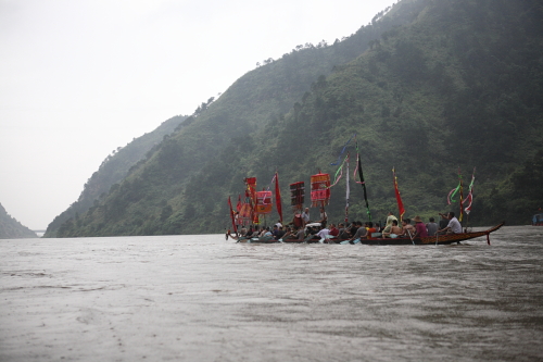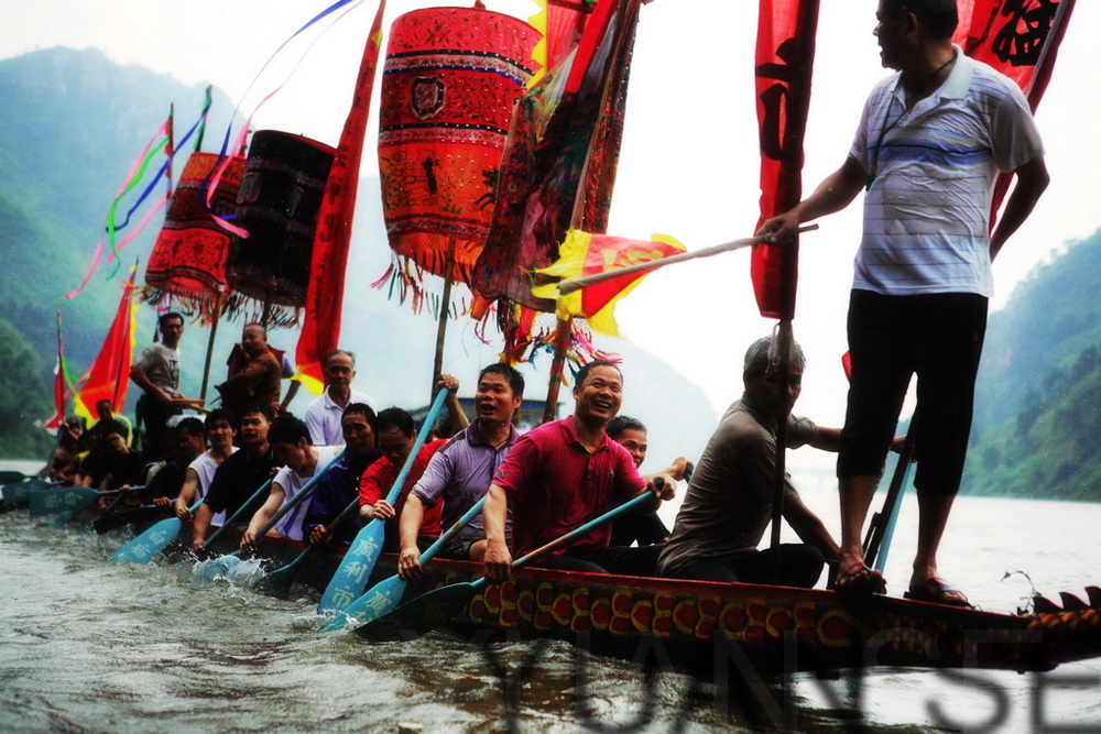 在大江大河中的大龙舟不多见,唯白庙在峡江自娱自乐,百分百天然生态,有别政府的那个做苏的表演。