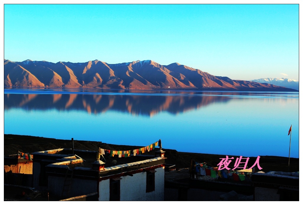 当惹雍措位于藏北文部二村、象雄王国遗址旁边,海拔4530米,是西藏著名的圣湖之一,也是苯教最重要的神湖。此处人迹罕至,湖水明净清澈,美不胜收。藏北牧人常以“上部的冈仁波齐和玛旁雍湖,中部的达果雪山和当惹雍湖,下部的念青唐拉山和纳木措”相称,并列为西藏的三大名山圣湖,每年到这里转山转湖的香客信徒络绎不绝。当惹雍错位于一个深陷的湖盆底部,它与当惹雍错相毗邻。实际上当穷错与当惹雍错是在同一个湖盆之内,湖水未枯以前本是同一湖泊。这正是当穷错名字的来历,藏语里当穷错即小的当惹雍错之意。据说此湖在一天之中能变换三种颜色。湖东岸是连绵不断、屏风般矗立的褚红色山壁,它们清晰地记录了当惹雍错湖水一次次下降的历史。被湖水冲刷而成的阶梯从湖畔山顶一圈又一圈地一直环绕到湖滨。 <DIV