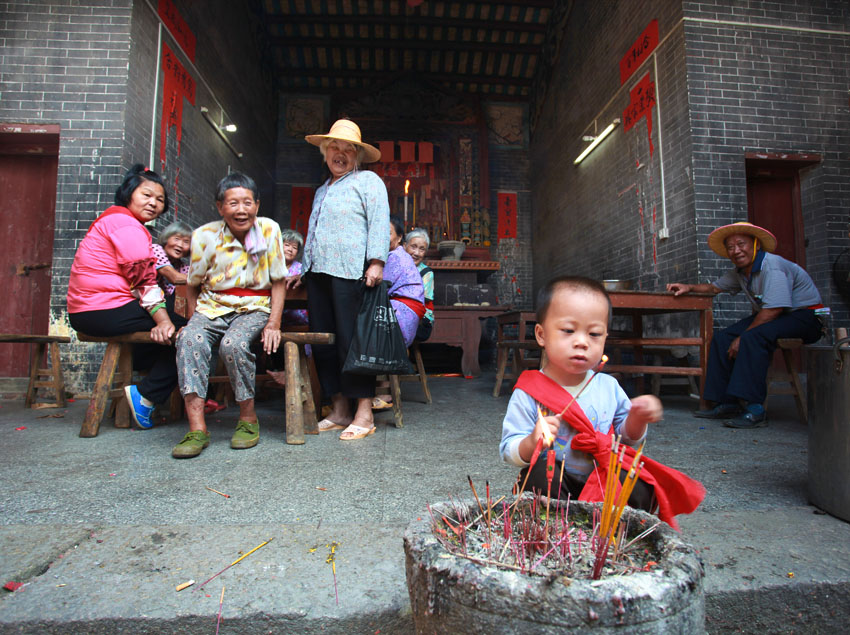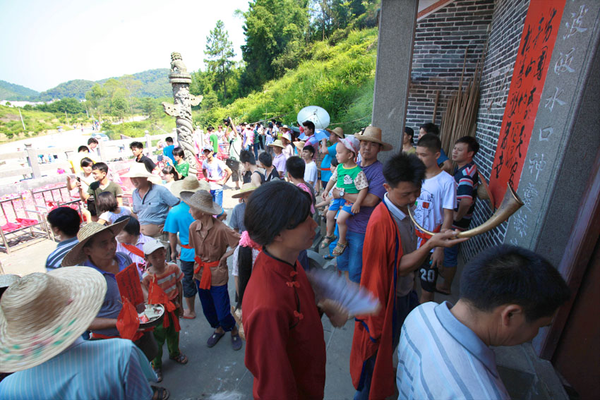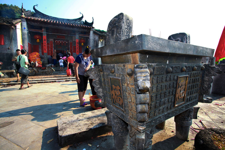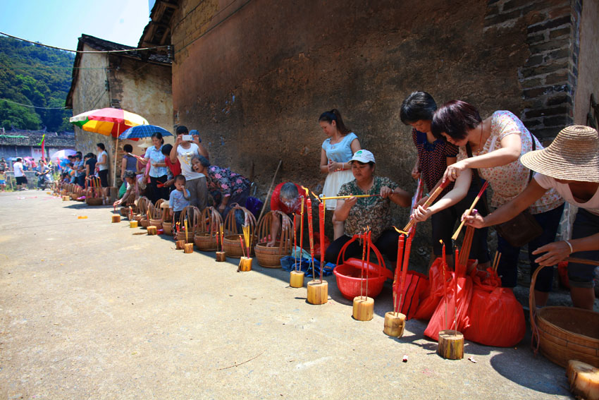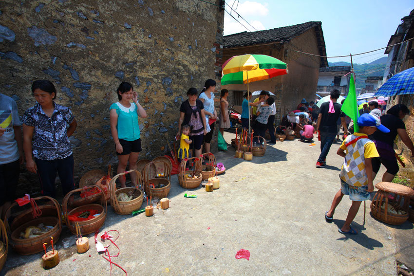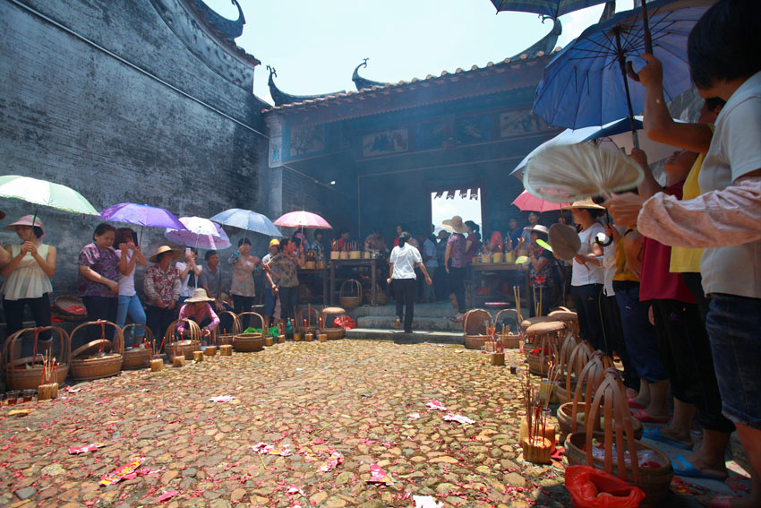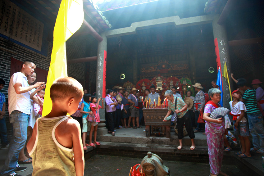 那天真是印象深刻,之所以这样说,一是天气真的太热,几乎中暑了,好在当地村民热情,及时提供茶水,连续喝了近10杯水后,才感觉舒服点,二是场景比想象中热闹多了,一排排祭神的合蓝摆满祠堂周围,真是太壮观了;三是金灶村节日的气氛真是浓,那天,出外打工的、外嫁的全回到村里,节日气氛堪比春节,热闹非繁,还有热情好客的村民,很值得一拍。由于第一次拍,不熟悉程序,没拍好,明年继续。