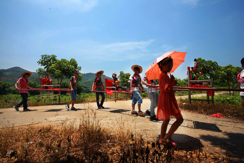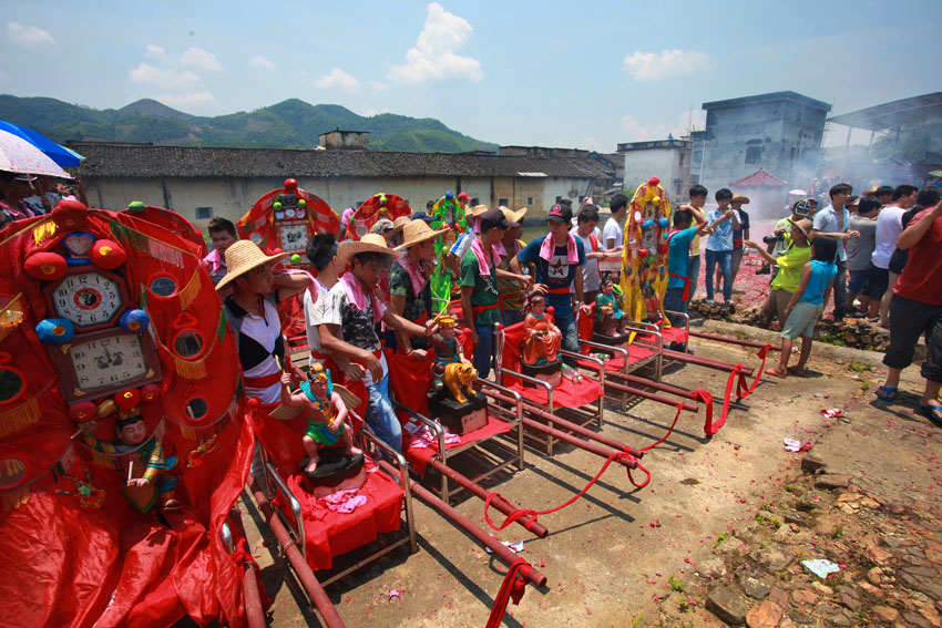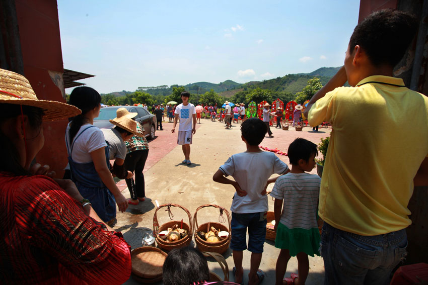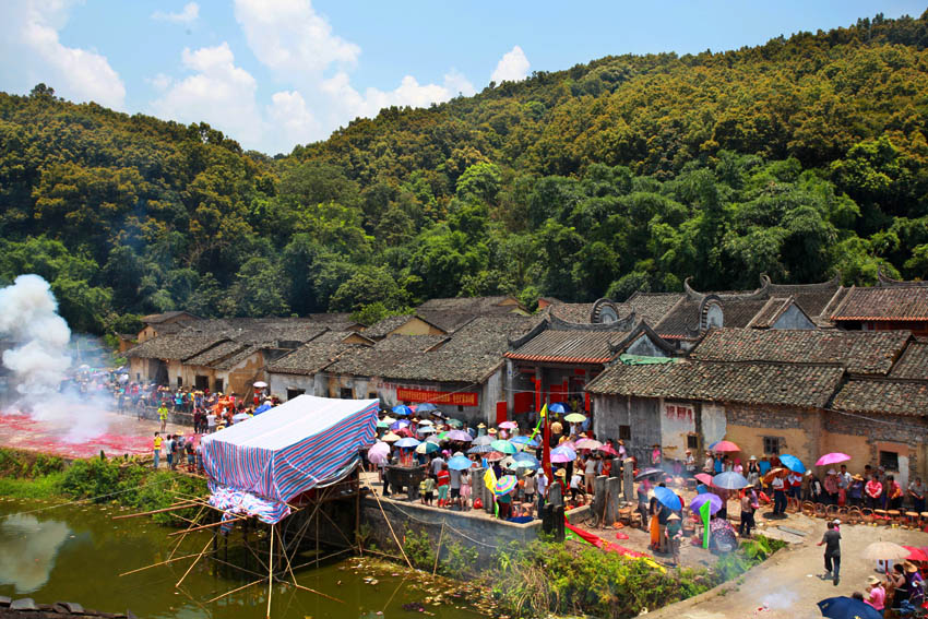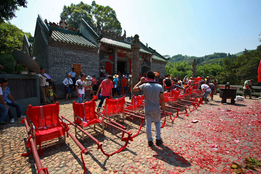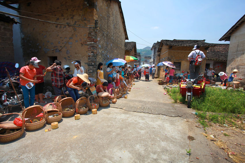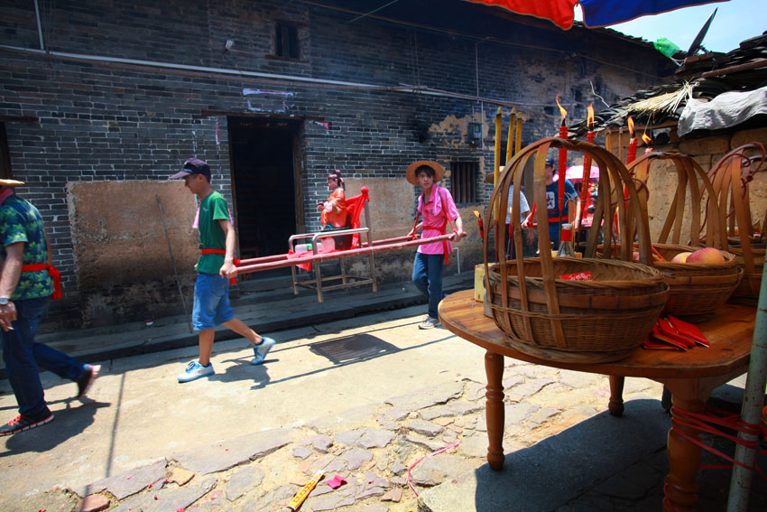 那天真是印象深刻,之所以这样说,一是天气真的太热,几乎中暑了,好在当地村民热情,及时提供茶水,连续喝了近10杯水后,才感觉舒服点,二是场景比想象中热闹多了,一排排祭神的合蓝摆满祠堂周围,真是太壮观了;三是金灶村节日的气氛真是浓,那天,出外打工的、外嫁的全回到村里,节日气氛堪比春节,热闹非繁,还有热情好客的村民,很值得一拍。由于第一次拍,不熟悉程序,没拍好,明年继续。
