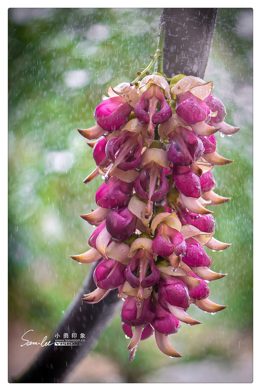 # 清远市 市花 # 禾雀花,又叫雀儿花,通常有白花油麻藤,花白色;美叶油麻藤,花紫色;常绿油麻藤,花深紫色等几种,为蝶形花科油麻藤属木质藤本植物。簇串状花穗,直接长在藤蔓上,因其形肖似禾雀而得名。。禾雀花在广东的江门、肇庆、清远、广州、韶关、东莞、等地均有分布