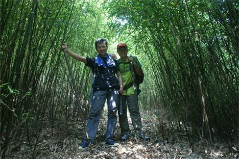 由百步梯至上登顶,登第一顶上为急升,可分作两次休息,有小树荫。继续往高峰登顶,沿途有林荫,可以分作休息站,一路山坟较多,登顶时需注意脚下泥石是否稳固,部分陡坡需手脚并用攀爬。登顶后右转切入玄真方向(左转为太和洞方向),其中休息小树林较多,最高锋处大石头处右转下山,之后都为平缓林荫山路,曲径通幽处,经过幽美小竹林,遇分差口应以前进方向转左(转右为另一山脊下山处,也有溪流)。