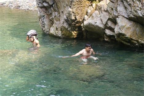 3.本线路溯溪有七八个潭需克服,每潭两边皆是悬崖峭壁,其中有四个深潭需游泳而过。