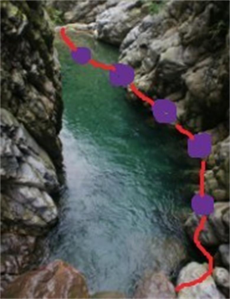 2.本线路溯溪至王子谷难度不高,至大悬崖出,若无法克服,应选择折返,以免进退维谷。